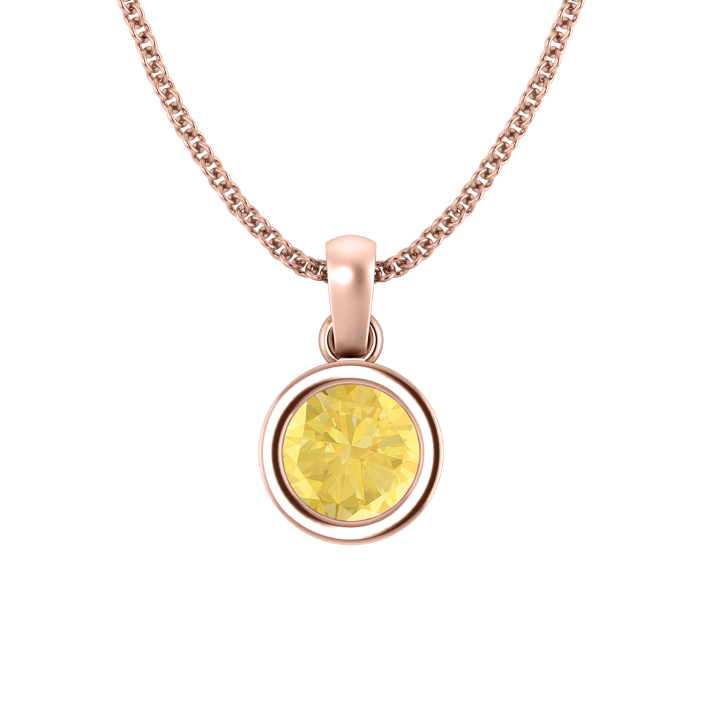 Die Bezel Pendant Necklace verbindet Minimalismus mit moderner Eleganz. Der Runden geschliffene Gelber Saphir Anhänger ist in einer 18 Karat Roségold Umrandung eingefasst und balanciert mühelos an einer passenden Kette.