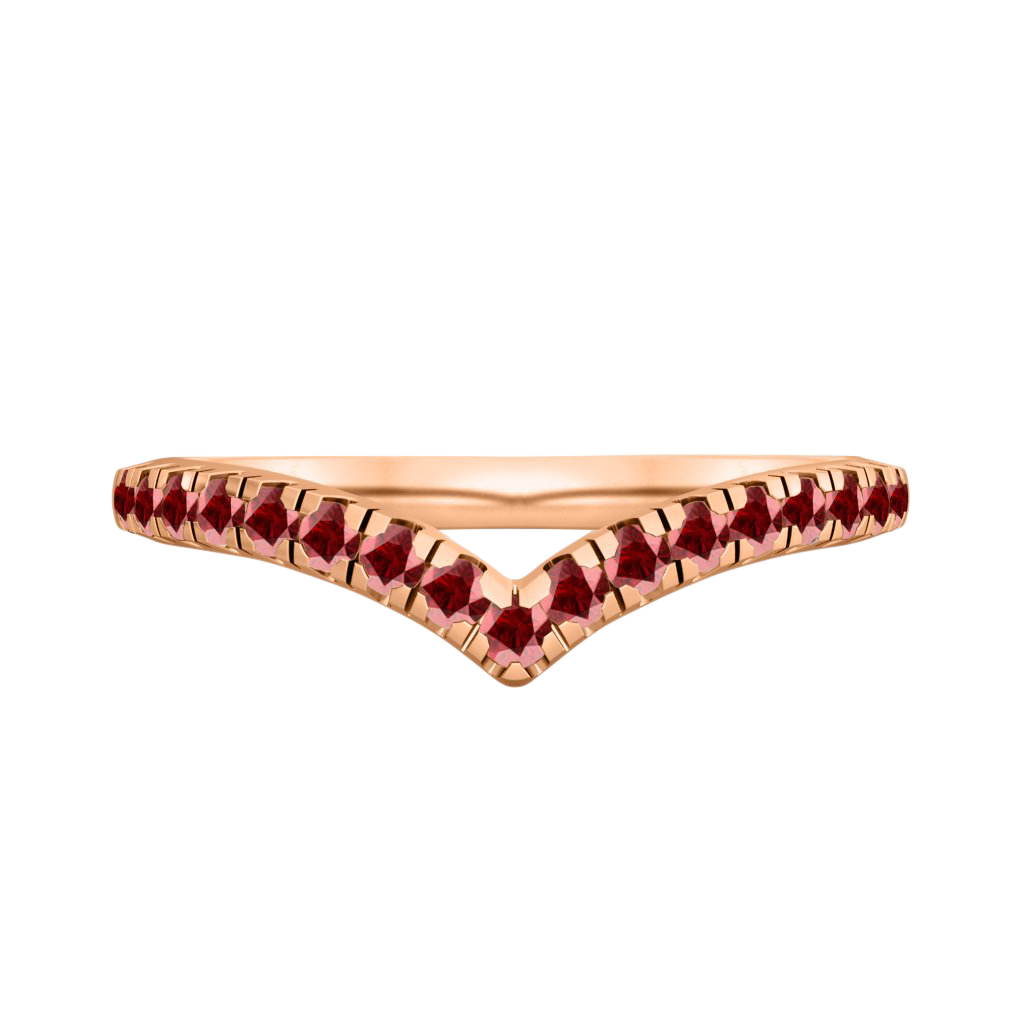 Legen Sie Ihr Band einfach um den Mittelstein Ihres Rings oder kreieren Sie mit dem Chevron einen einzigartigen Stapel. Der Chevron ist aus massivem 18 Karat Roségold gefertigt und enthält ca. 0,15cts Edelsteine oder Diamanten.