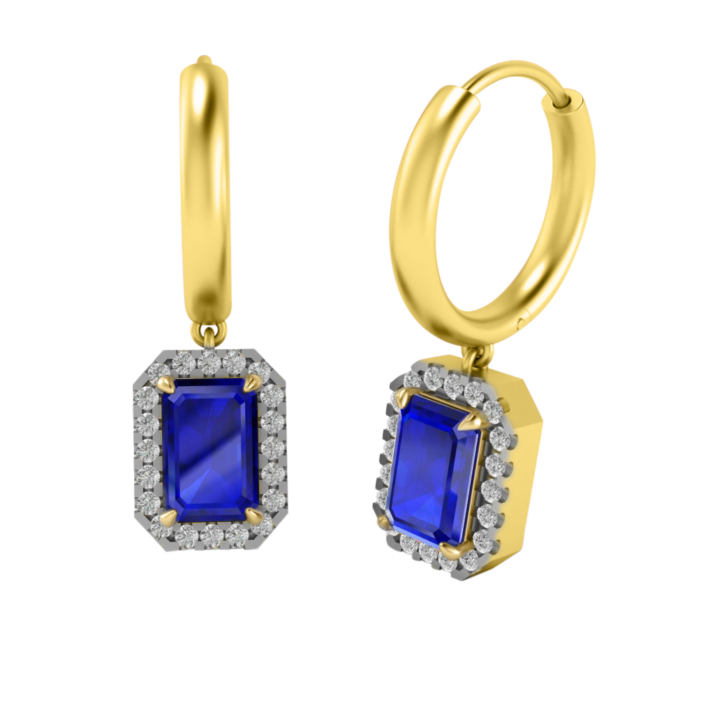 Classic Drop Emerald Blue Sapphire 18K Yellow Gold Earrings