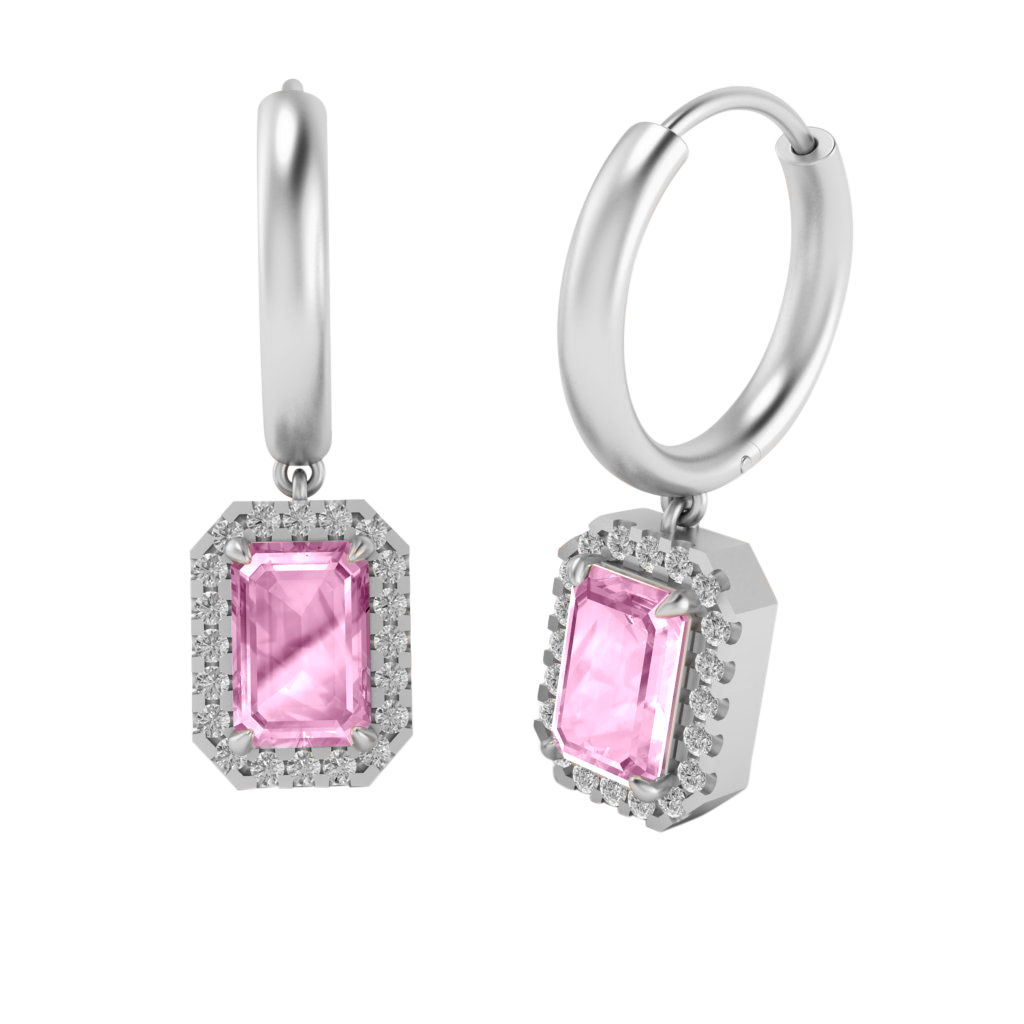 Classic Drop Emerald Pink Sapphire 18K White Gold Earrings