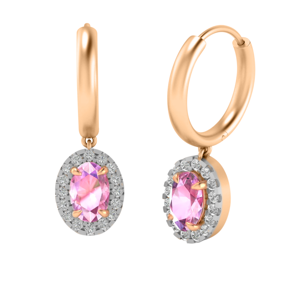 Classic Drop Oval Pink Sapphire 18K Rose Gold Earrings