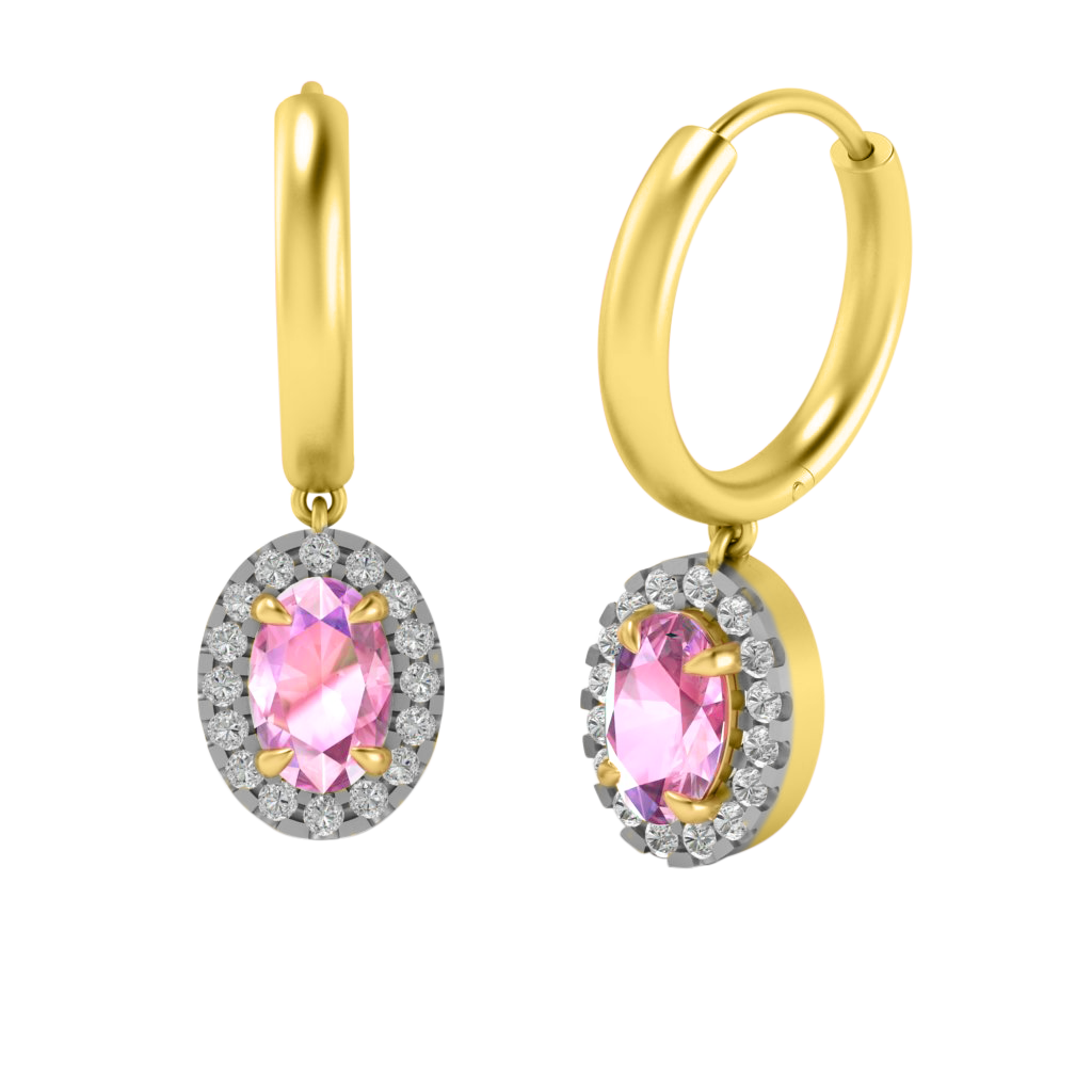 Classic Drop Oval Pink Sapphire 18K Yellow Gold Earrings