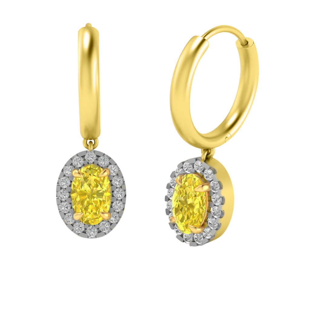 Die aus recyceltem 18-karätigem Gelb-, Rosé- oder Weißgold gefertigten Tropfenohrringe können mit einer Auswahl von sieben Edelsteinen und vier verschiedenen Schliffen individuell gestaltet werden. Dieses Design ist mit einem funkelnden Halo aus G/H VS-Diamanten verziert, der den Blick auf Ihren glitzernden Edelstein lenkt! Zu was werden Sie Ihren Schmuck tragen?