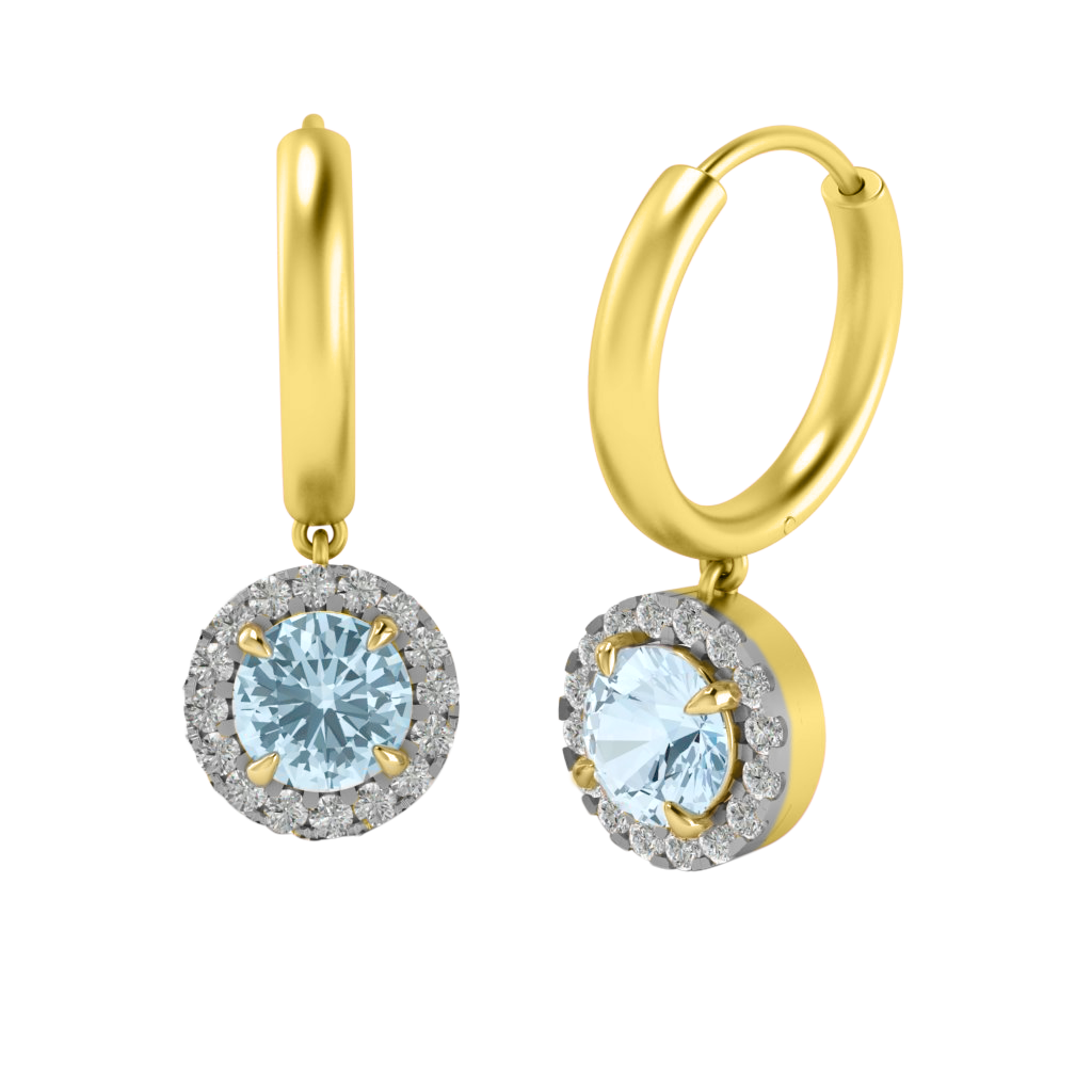 Classic Drop Round Aquamarine 18K Yellow Gold Earrings