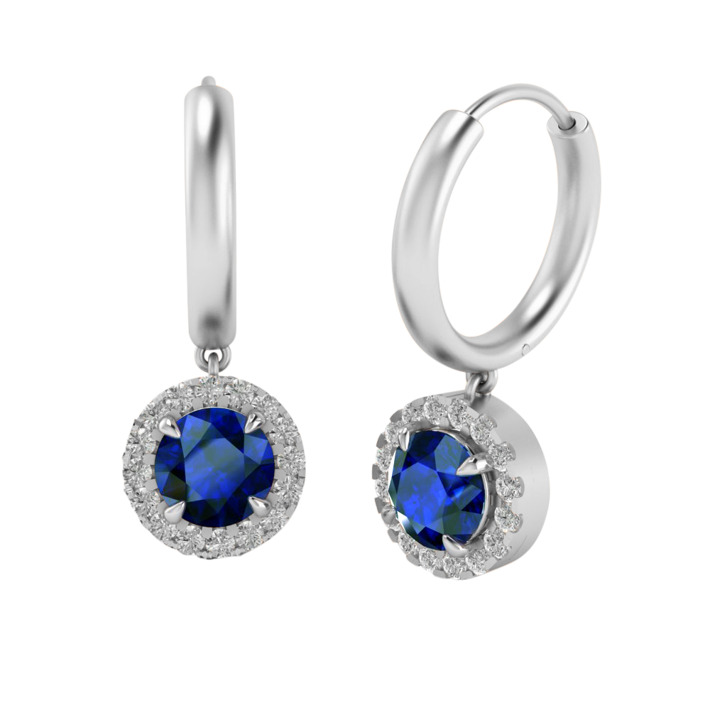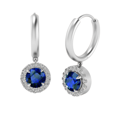 Classic Drop Round Blue Sapphire 18K White Gold Earrings