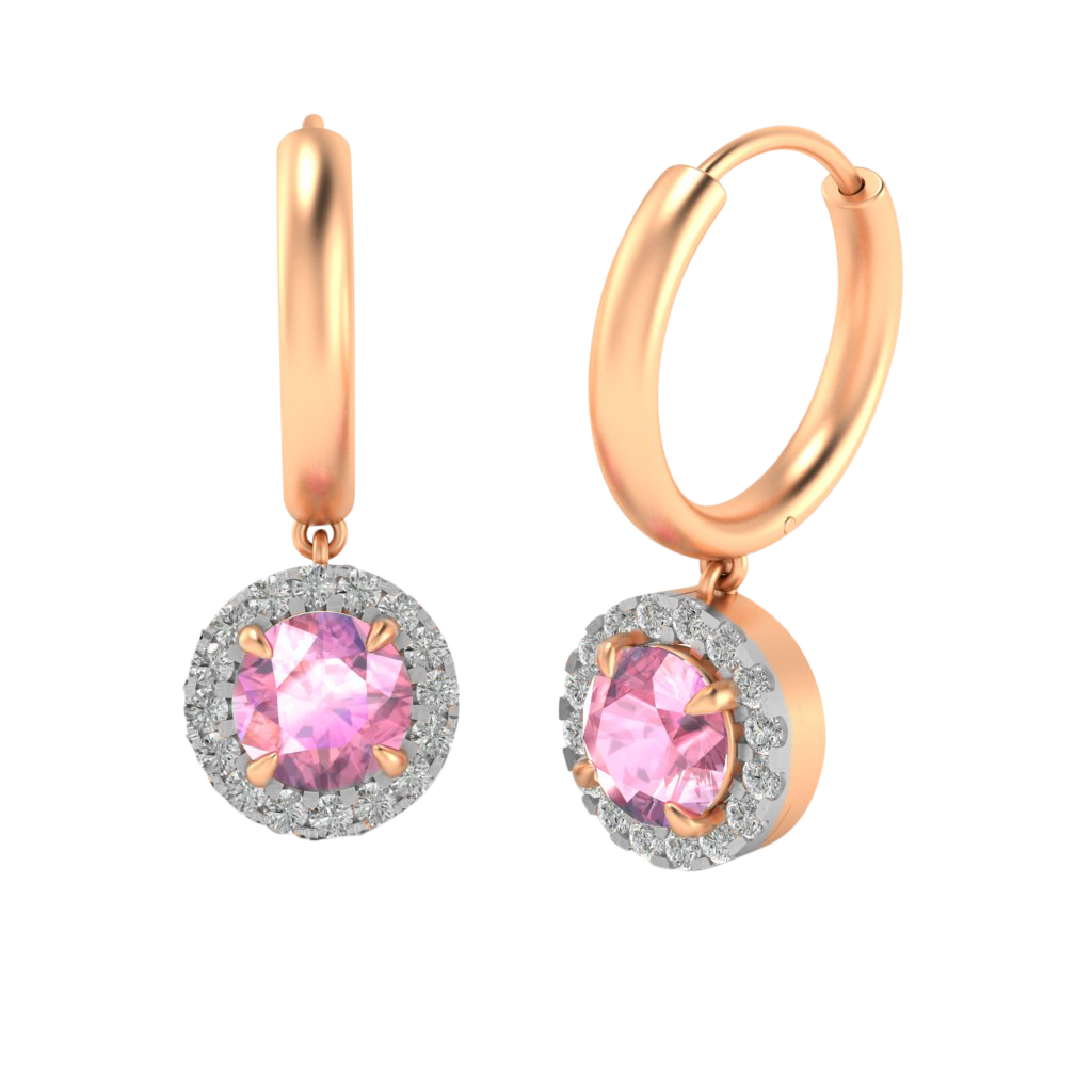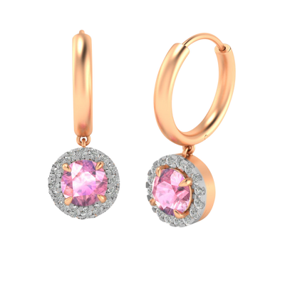 Classic Drop Round Pink Sapphire 18K Rose Gold Earrings