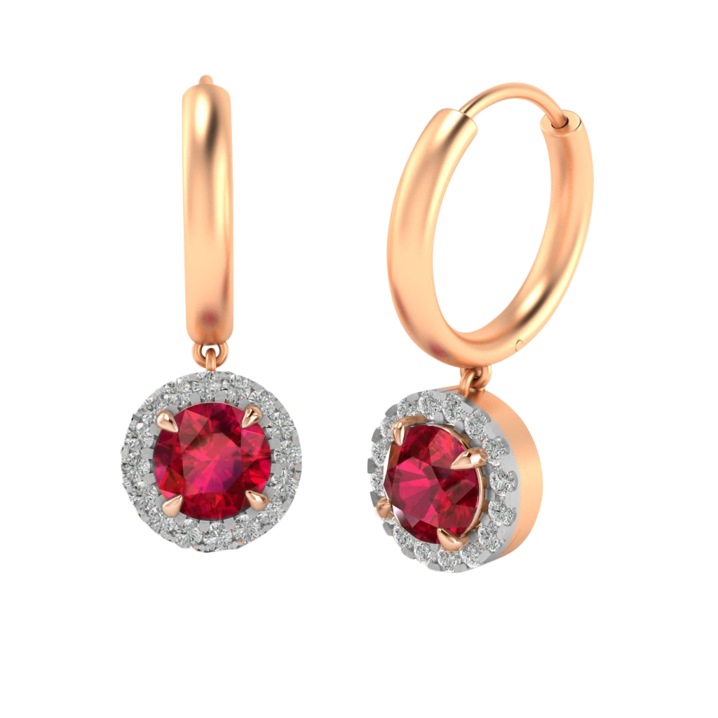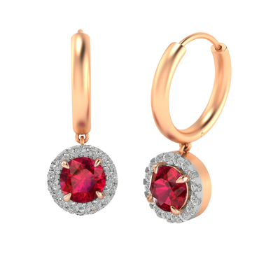 Classic Drop Round Ruby 18K Rose Gold Earrings