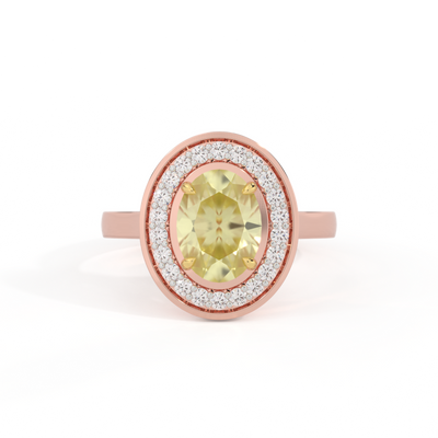 Deco Oval Yellow Sapphire 18K Rose Gold Ring