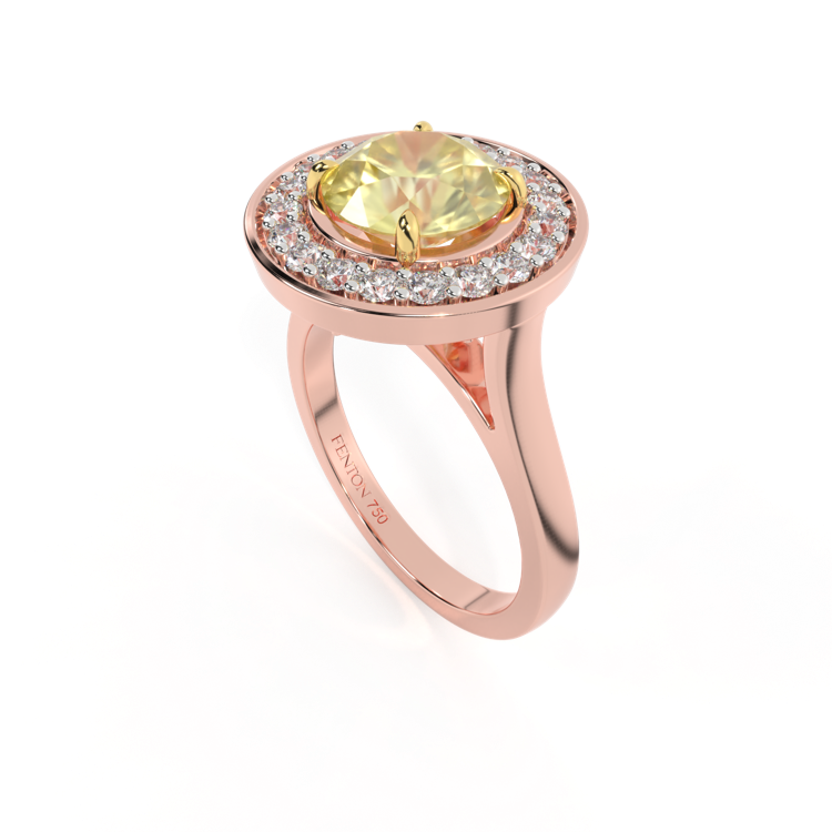 Deco Round Yellow Sapphire 18K Rose Gold Ring