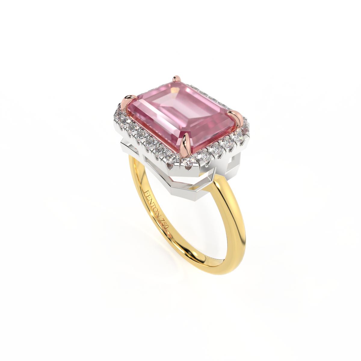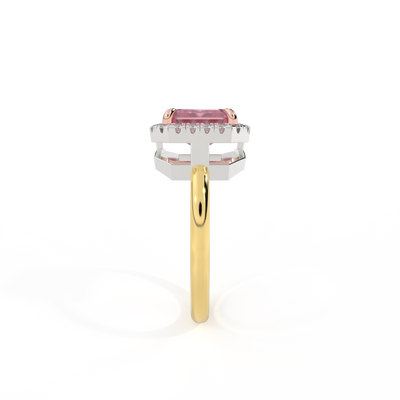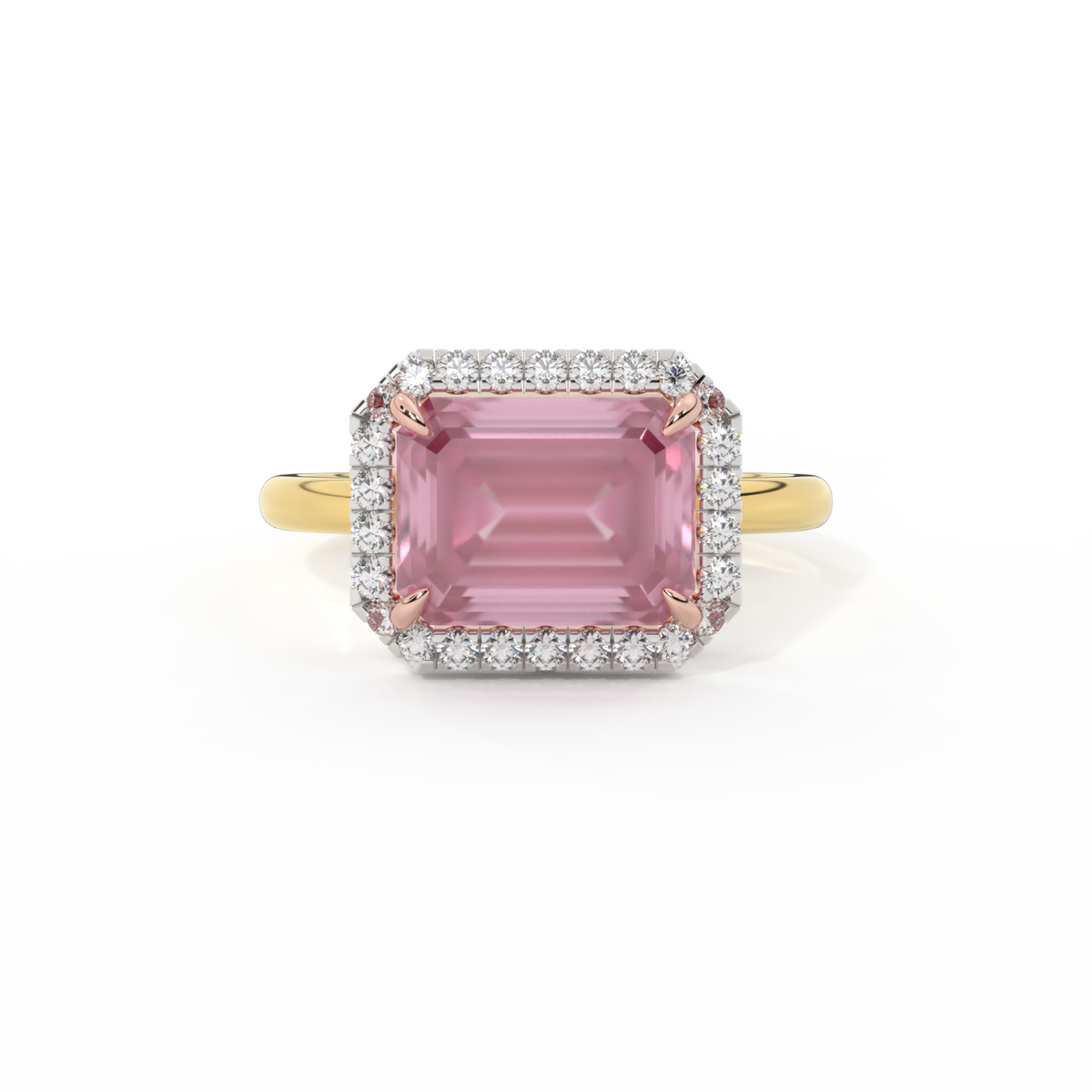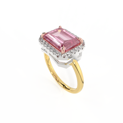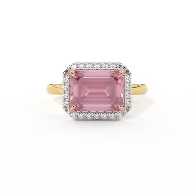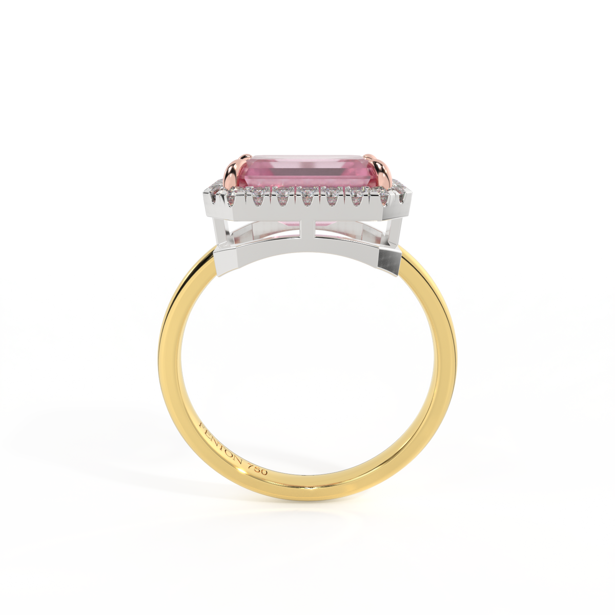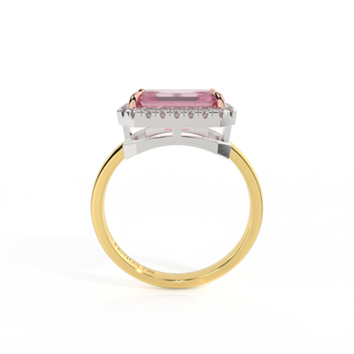 East West Emerald Pink Sapphire 18K Yellow Gold Ring