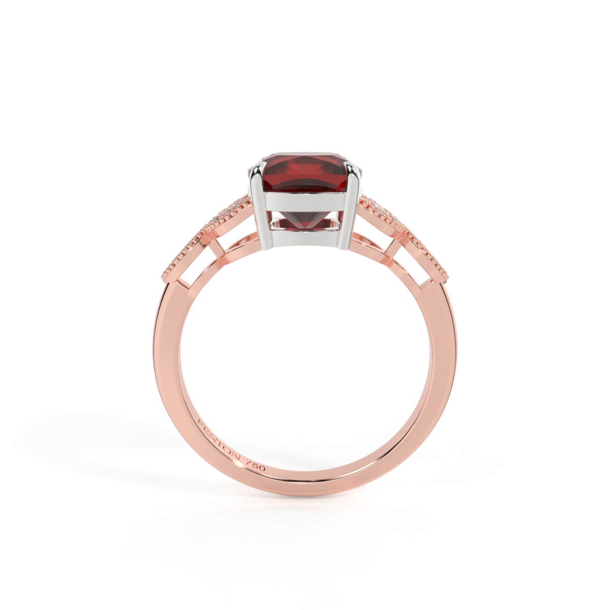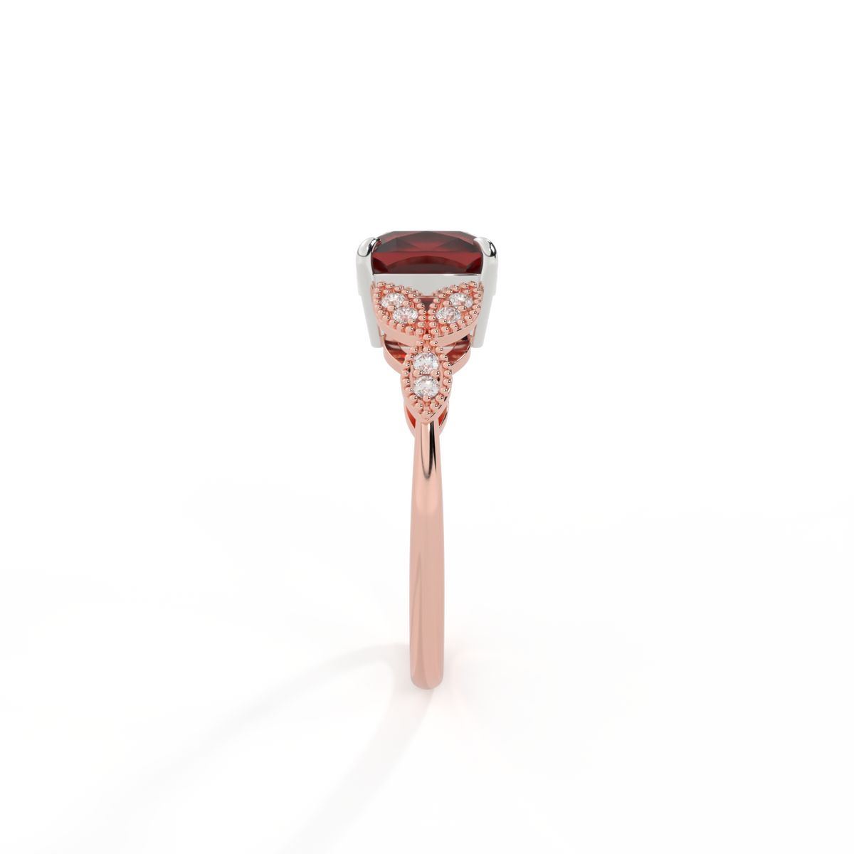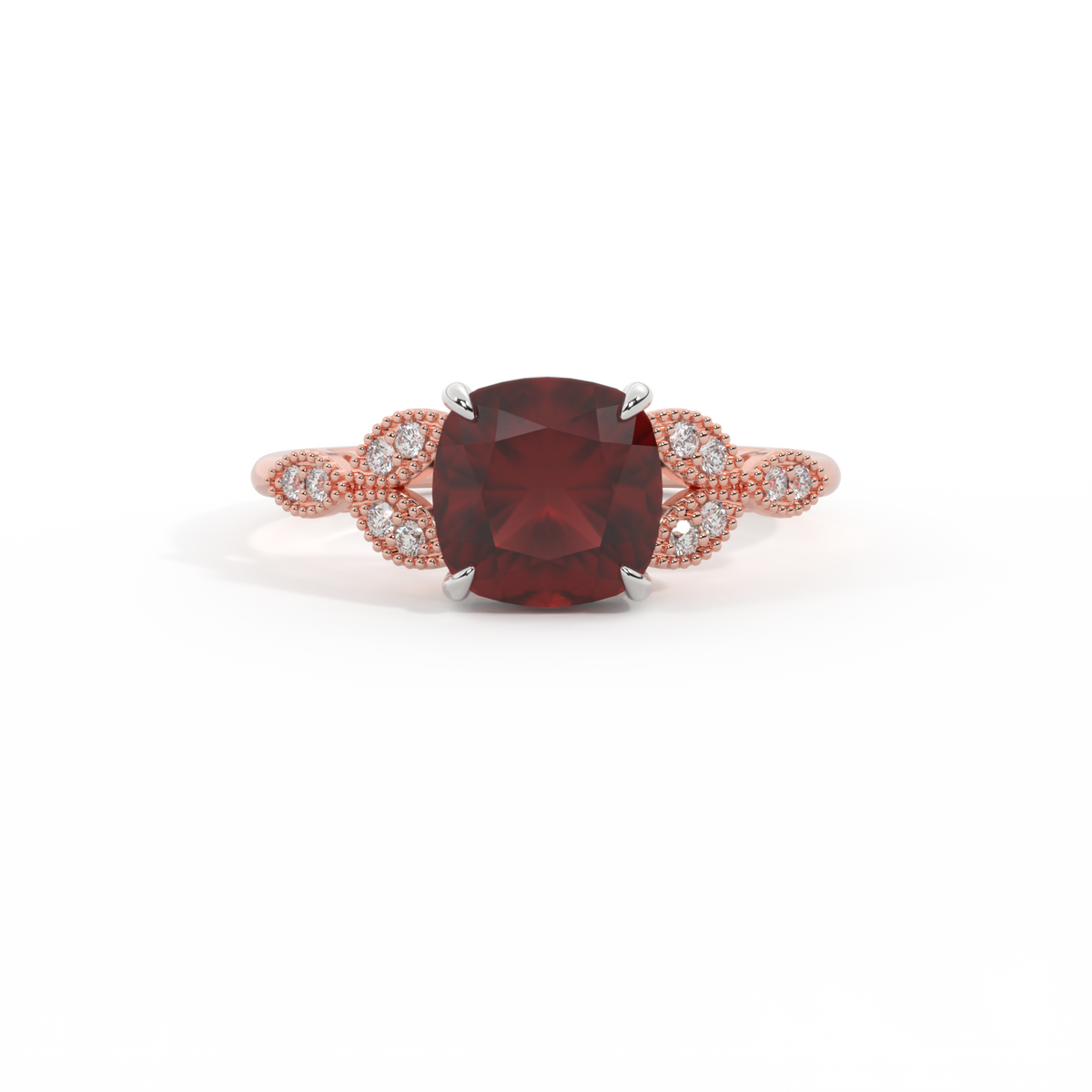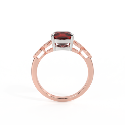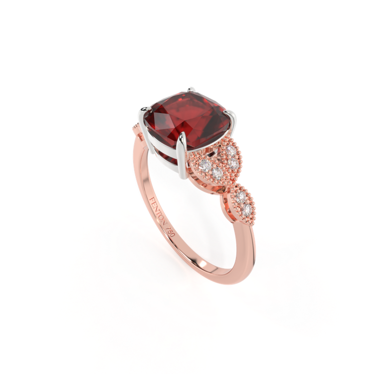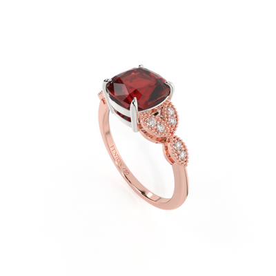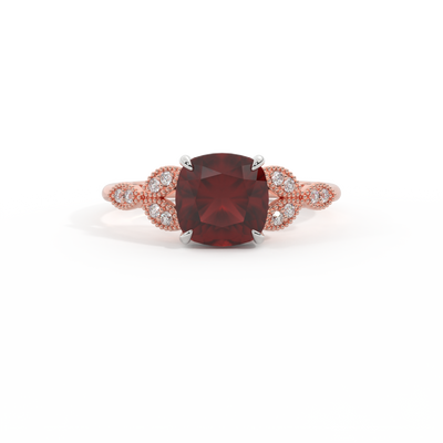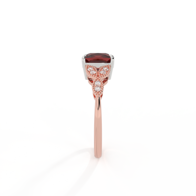 Floral Cushion Garnet 18K Rose Gold Ring