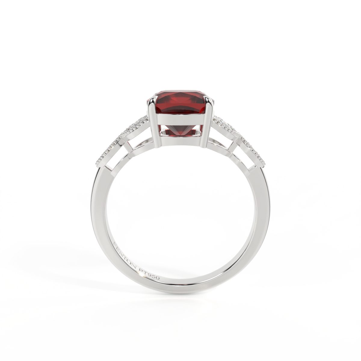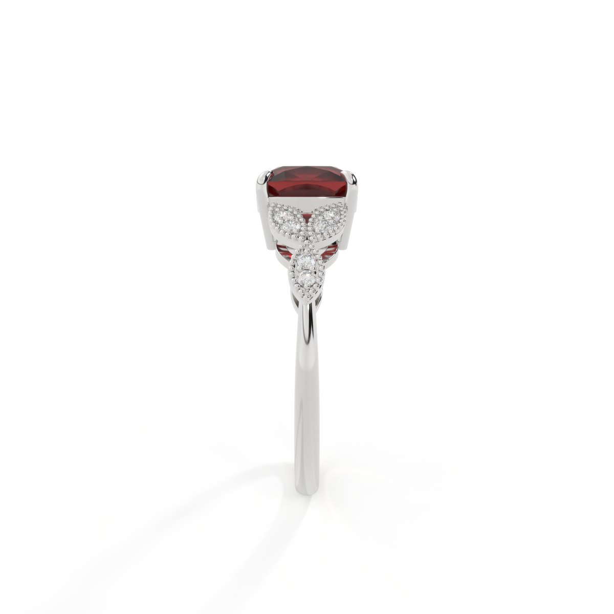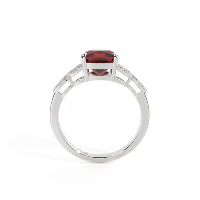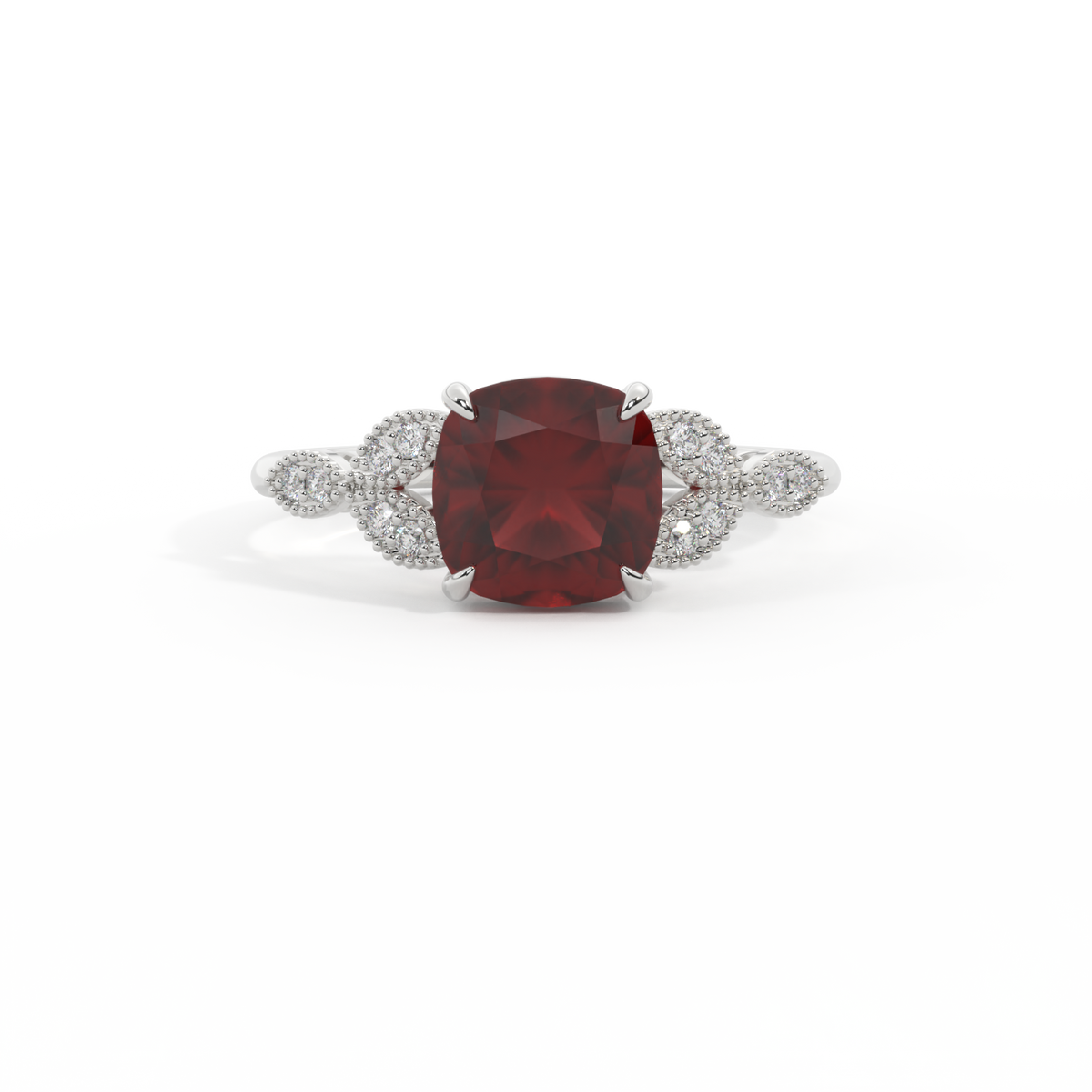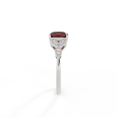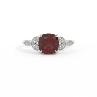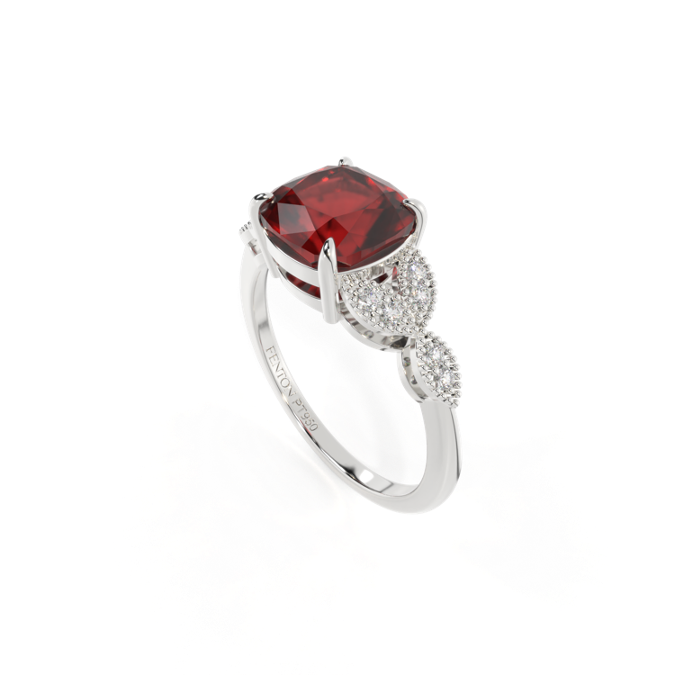 Floral Cushion Garnet Platinum Ring