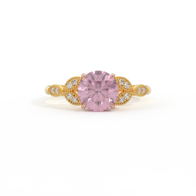 Die Schönheit einer Blume, neu interpretiert für die Ewigkeit. Inspiriert von der Romantik der viktorianischen Ära, wird dieser Runden Schliff Rosa Saphir von einem Duo zarter diamantbesetzter Blütenblätter mit Millegrain-Details akzentuiert - eine elegante Variante eines zeitlosen Klassikers.