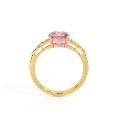 Floral Round Pink Sapphire 18K Yellow Gold Ring