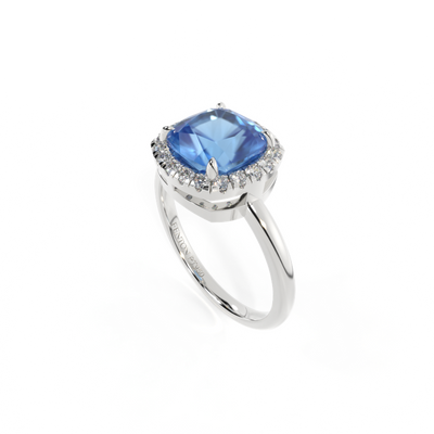 Alle unsere Ringe sind in blauem Saphir, Rubin, Smaragd, rosa Saphir, gelbem Saphir und Aquamarin erhältlich. Wir bieten drei Metalle an: 18 Karat Roségold, 18 Karat Gelbgold und Platin. Die Mittelsteine sind in vier Schliffen erhältlich: rund, kissenförmig, oval und Smaragdschliff sowie in fünf Größen für jeden Schliff und jedes Modell.