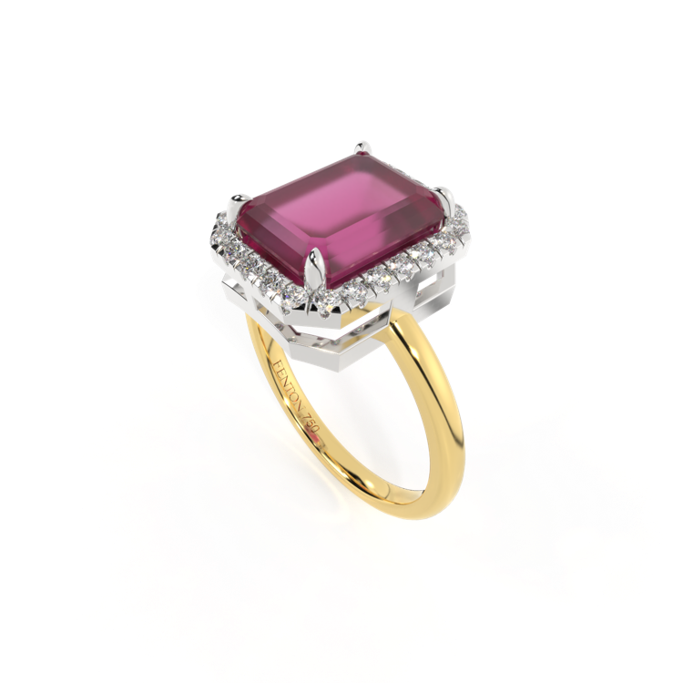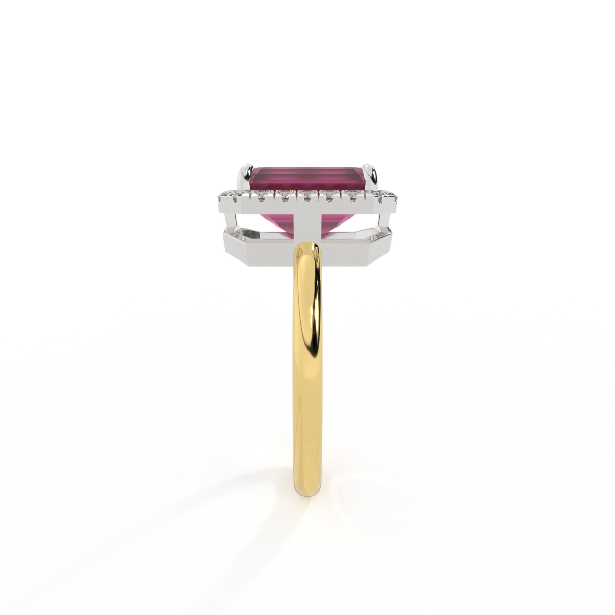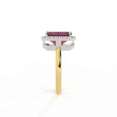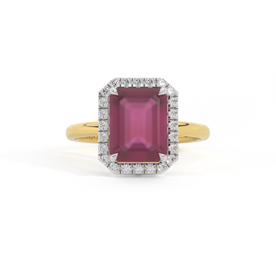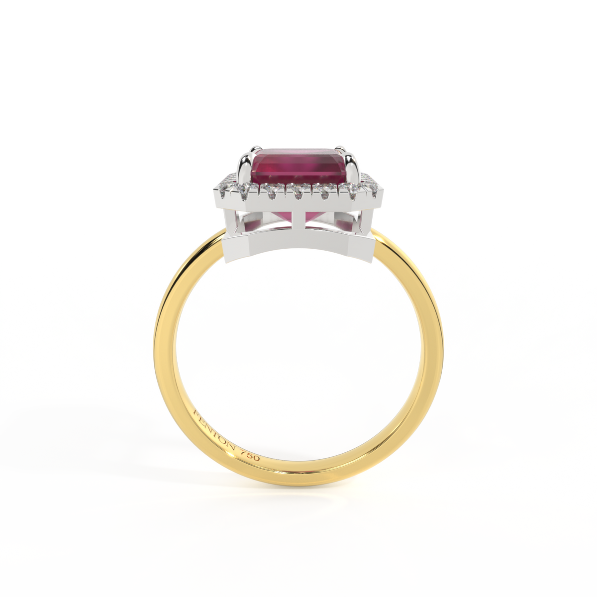 Halo Emerald Ruby 18K Yellow Gold Ring
