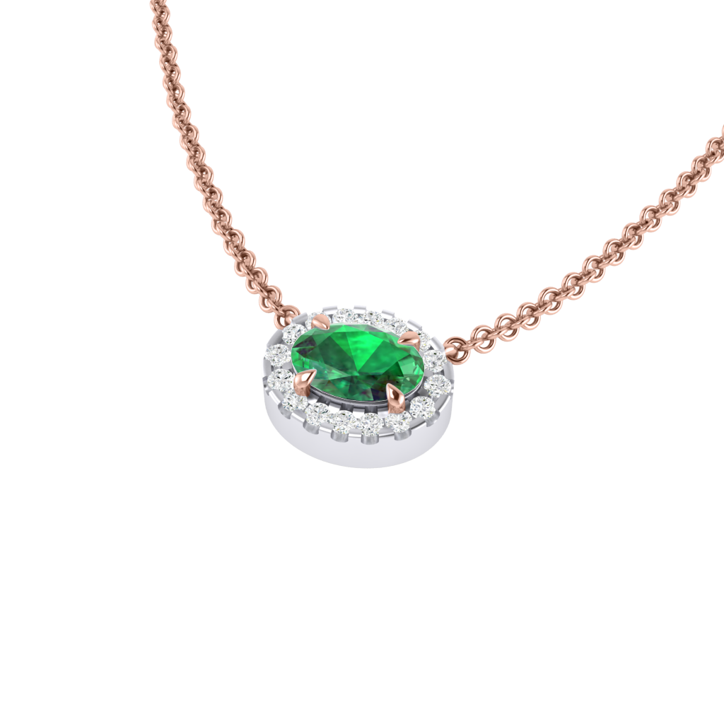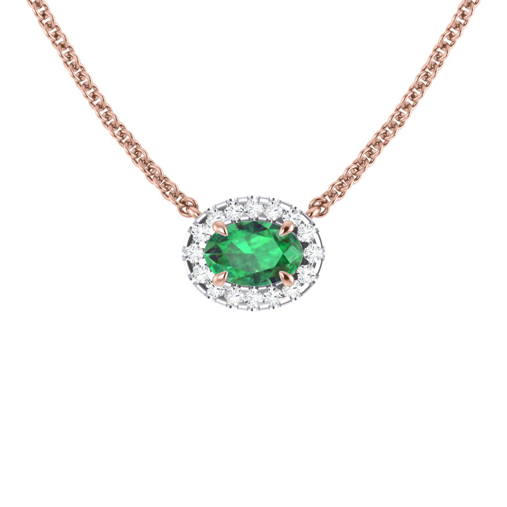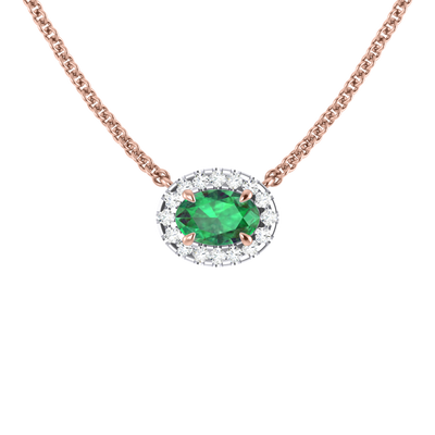 Die klassische Halskette ist das perfekte Geschenk für jeden Anlass. Eine massive 18 Karat Roségold Kette hält einen funkelnden Oval Schliff Smaragd in der Mitte Ihrer Halskette, umgeben von einem Halo aus runden Diamanten im Brillantschliffpavé der Farbe G/H und Reinheit VS. Die Classic Necklace ist die perfekte Kombination aus feinster Handwerkskunst und schlichter Eleganz.