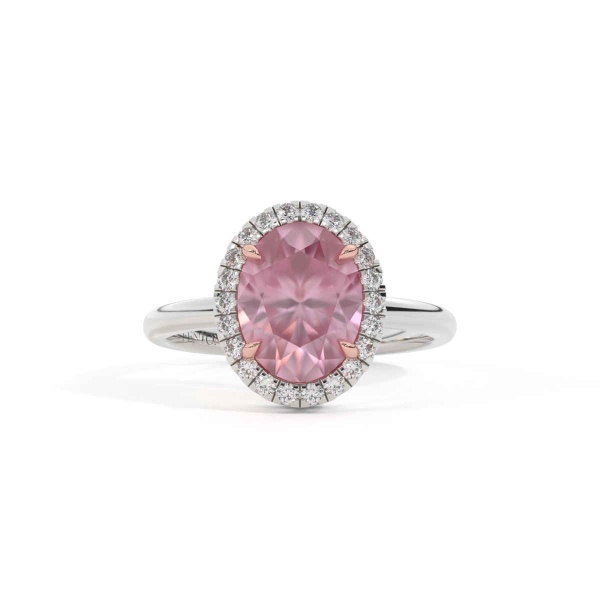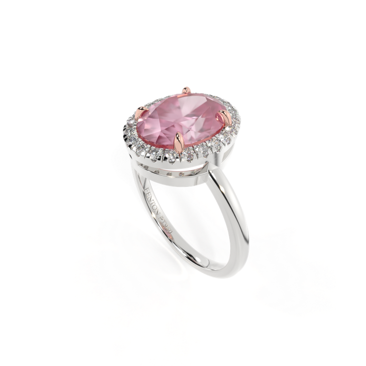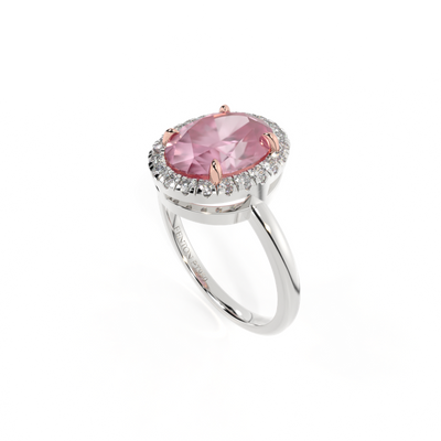 Halo Oval Pink Sapphire Platinum Ring