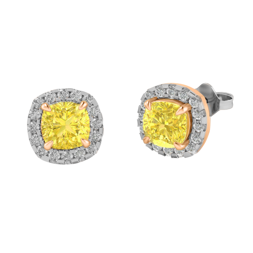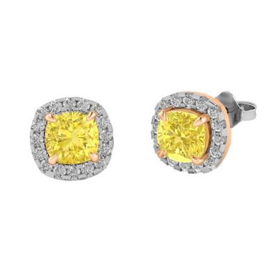 Halo Stud Cushion Yellow Sapphire 18K Rose Gold Earrings