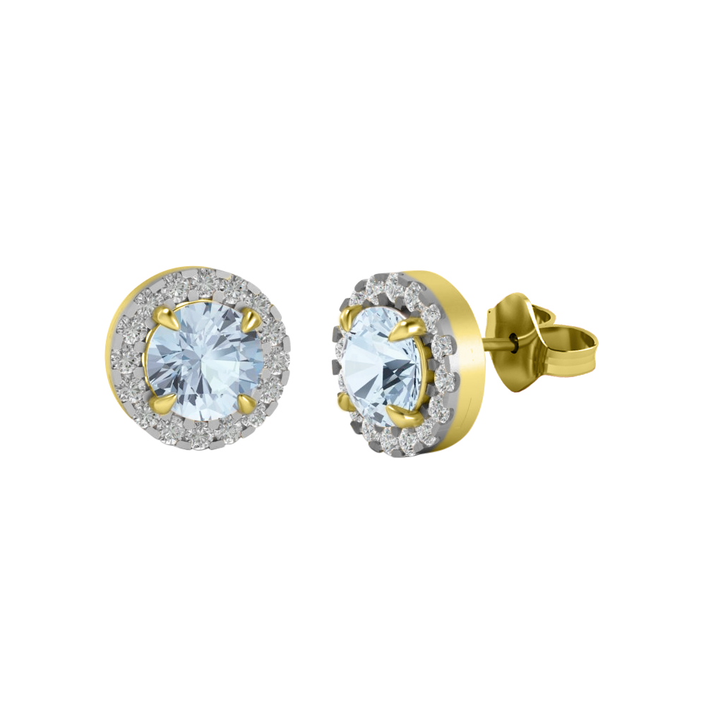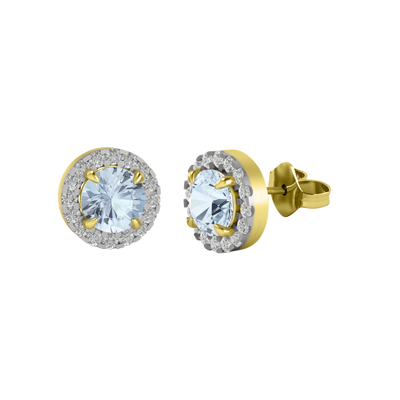 Halo Stud Round Aquamarine 18K Yellow Gold Earrings