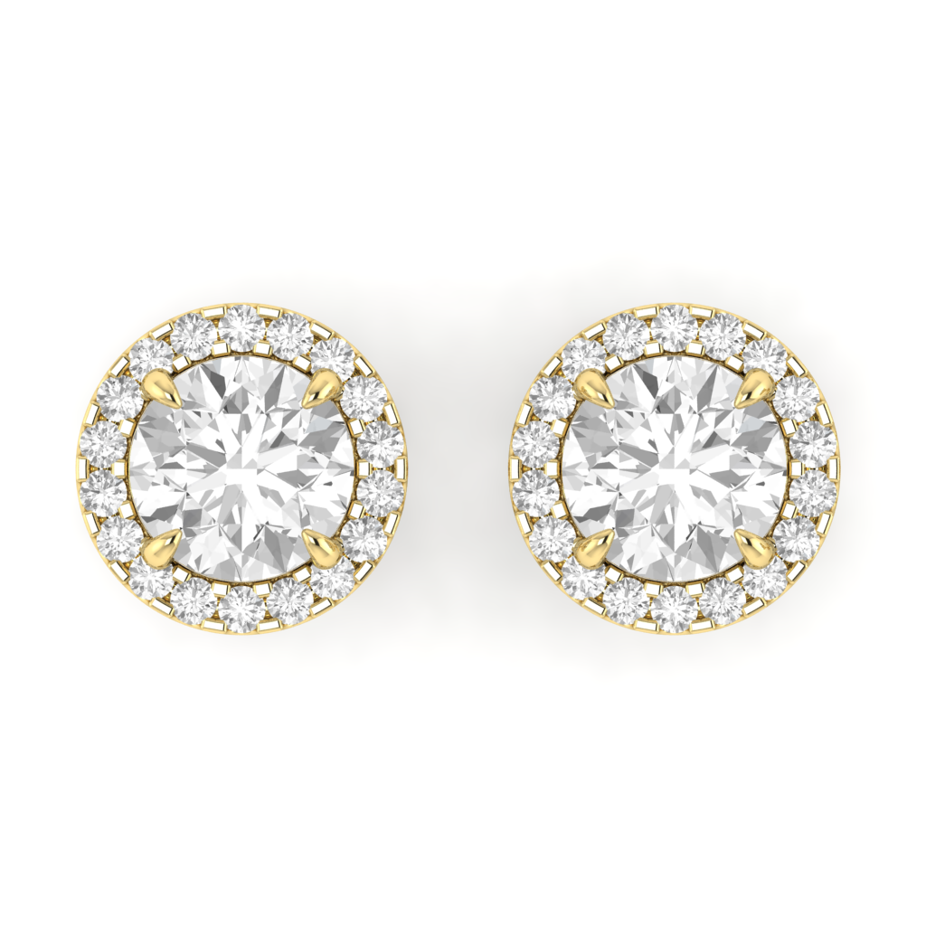 Halo Stud Round Solar Diamond 18K Yellow Gold Earrings
