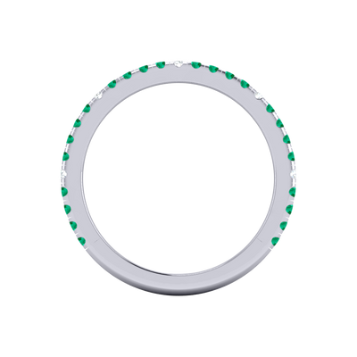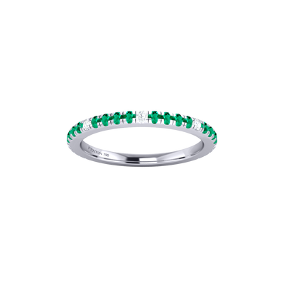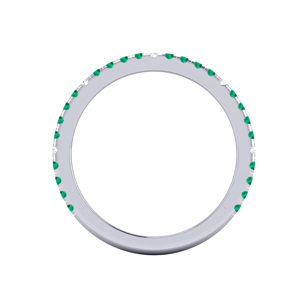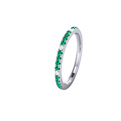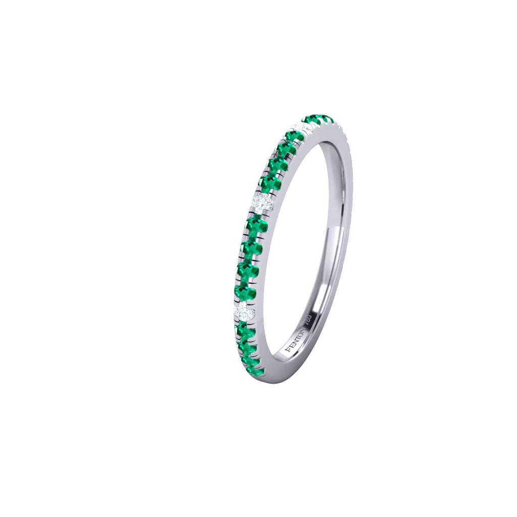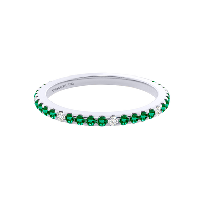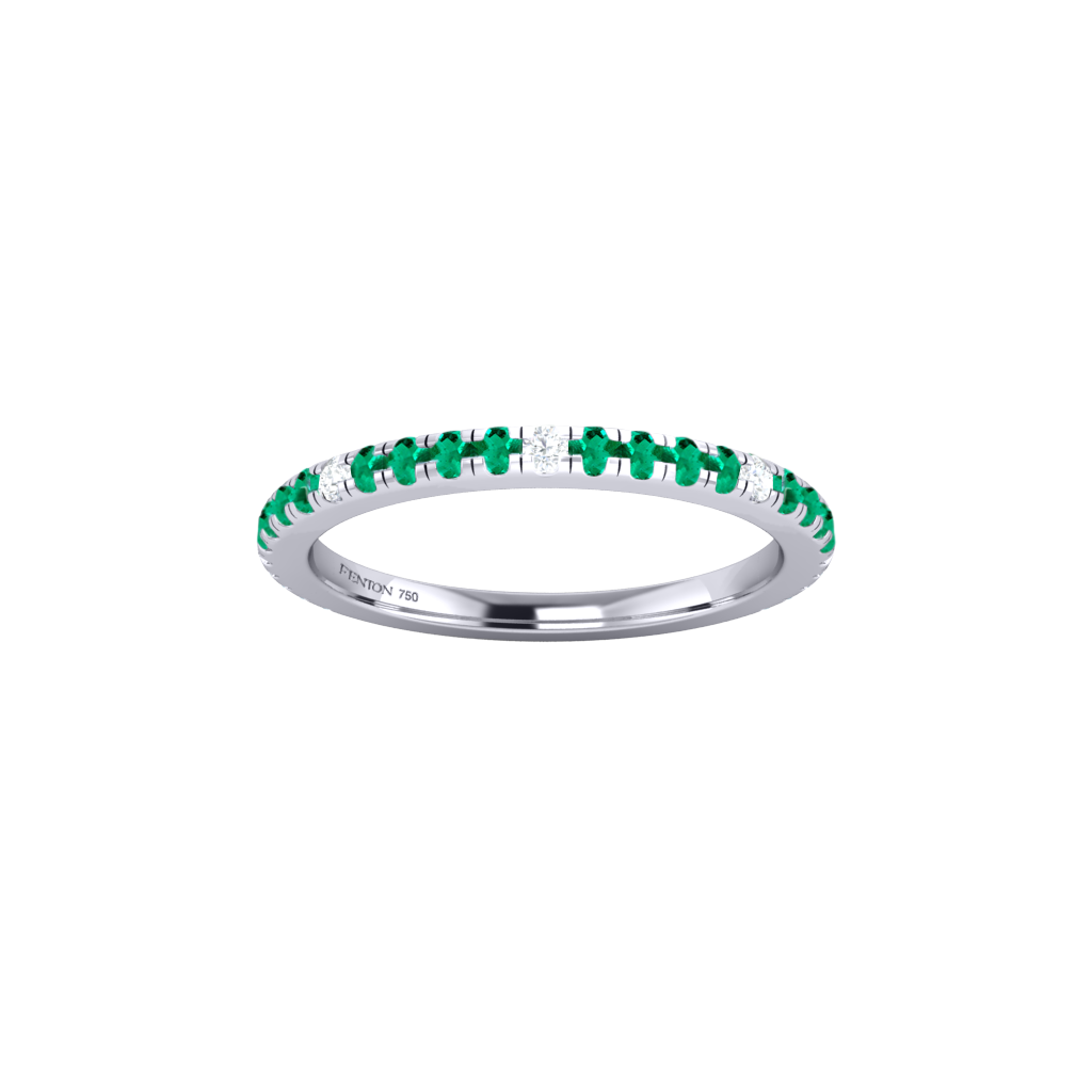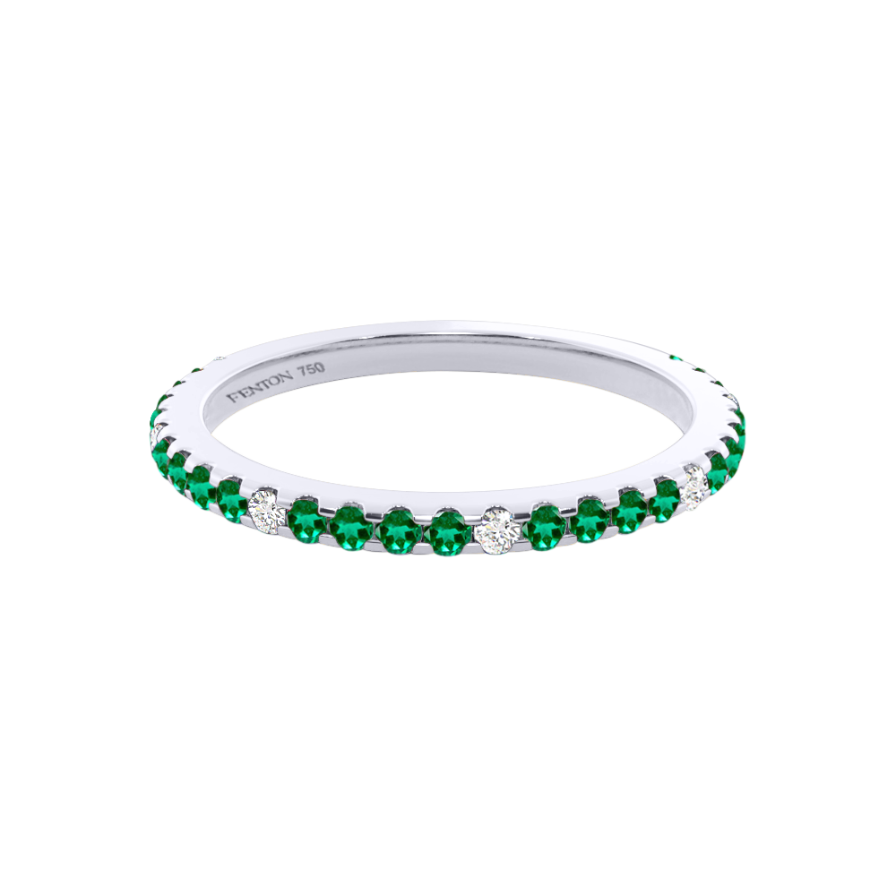 Mit dem Eternity-Band von Fenton verleihen wir einem Klassiker einen ganz neuen Dreh - raffiniert und zeitlos zugleich. Diese Ring lässt sich wunderbar solo tragen oder als klassischer Ehering zusammen mit Ihrem Verlobungsring für ultimatives Glitzern. Das Eternity Band trägt eine Reihe von funkelnden Smaragd Edelsteinen und Diamantakzenten und ist aus wertvollen 18 Karat Weißgold gefertigt. Die Smaragd und Diamanten Akzente verteilen sich über 3/4 Ihres glitzendern Ringes.