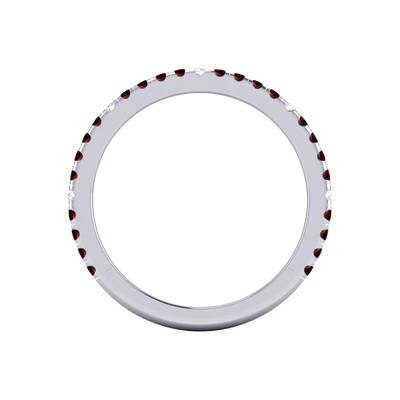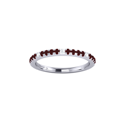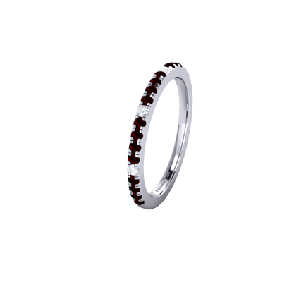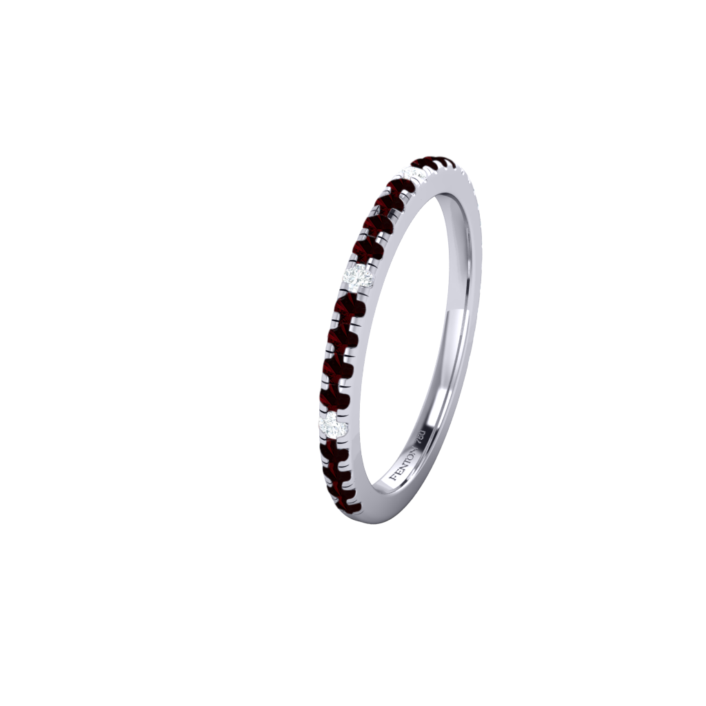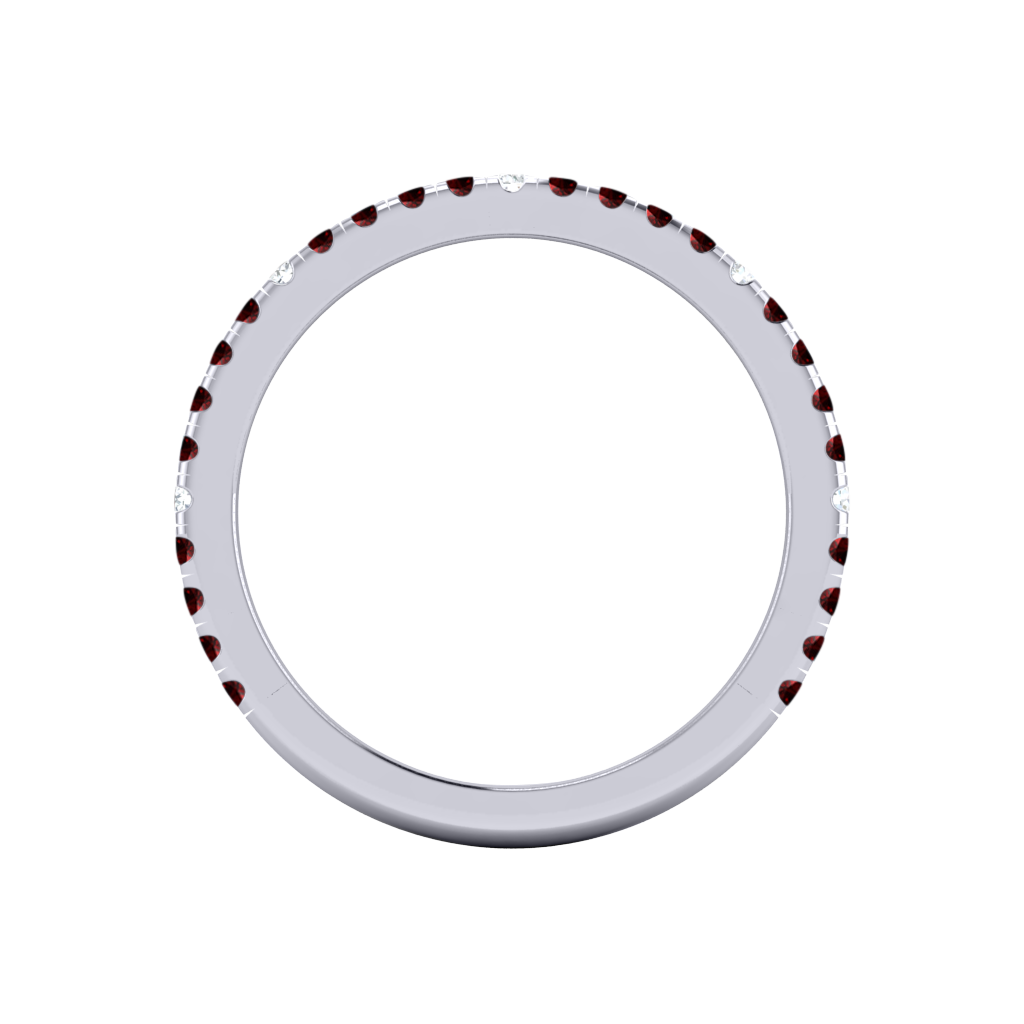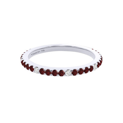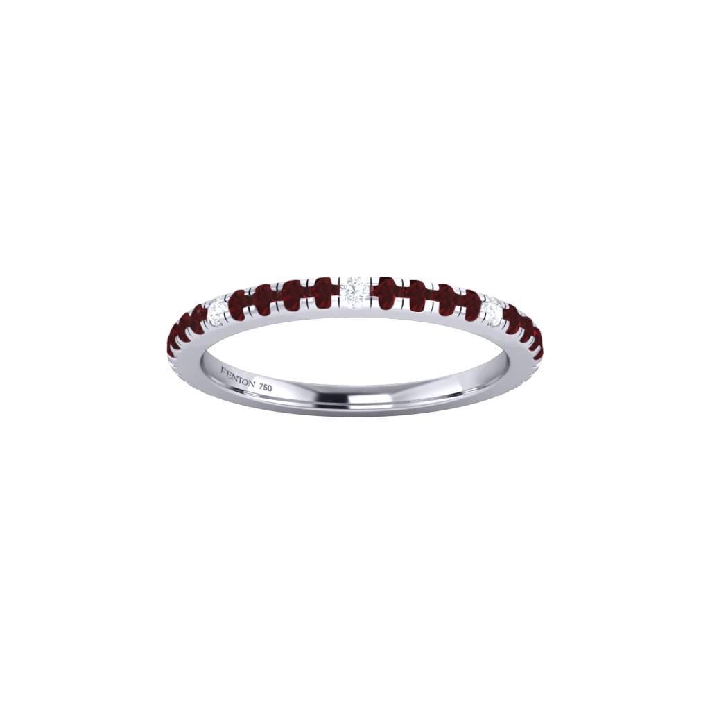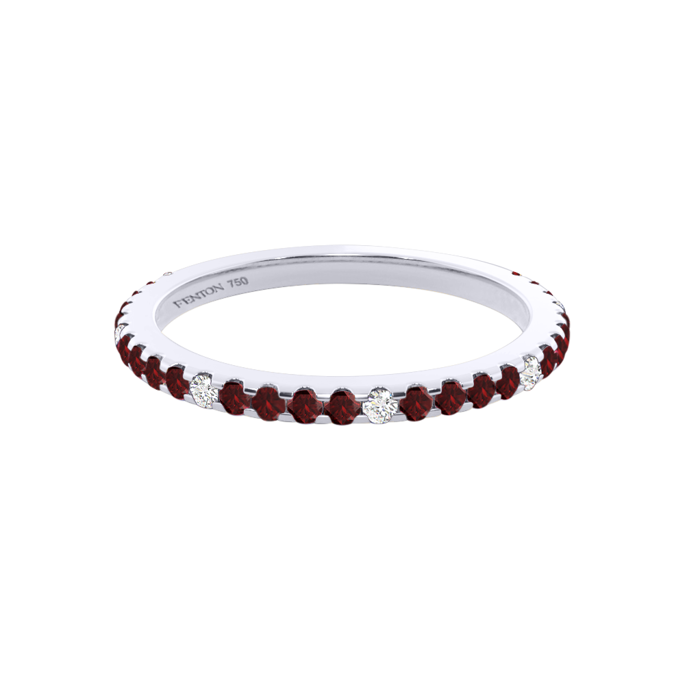 Mit dem Eternity-Band von Fenton verleihen wir einem Klassiker einen ganz neuen Dreh - raffiniert und zeitlos zugleich. Diese Ring lässt sich wunderbar solo tragen oder als klassischer Ehering zusammen mit Ihrem Verlobungsring für ultimatives Glitzern. Das Eternity Band trägt eine Reihe von funkelnden Granat Edelsteinen und Diamantakzenten und ist aus wertvollen 18 Karat Weißgold gefertigt. Die Granat und Diamanten Akzente verteilen sich über 3/4 Ihres glitzendern Ringes.