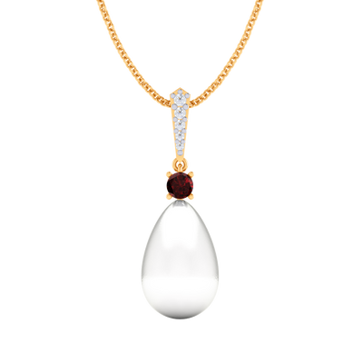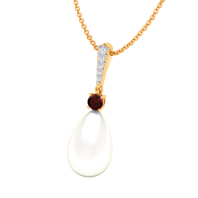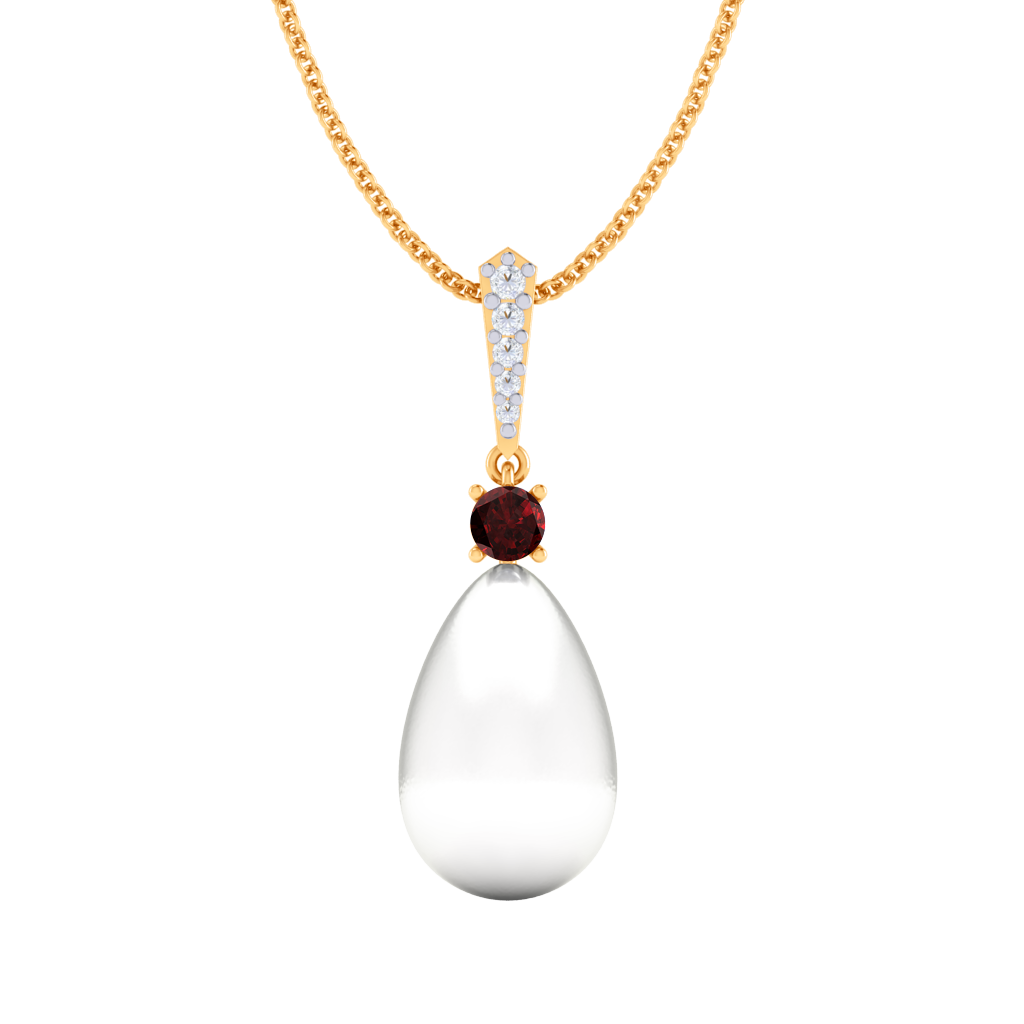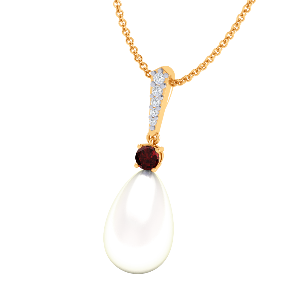 Die Kombination der majestätischen Perle mit dem glitzernden Granat ist eine zeitlose Ergänzung für jede Schmucksammlung. Ihre Kette und Fassung wird aus 18 Karat Gelbgold gefertigt.