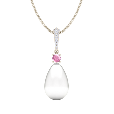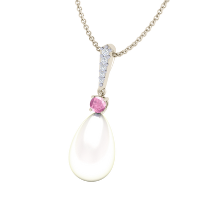 Classic Pearl and Pink Sapphire Drop Necklace
