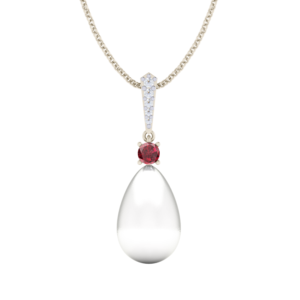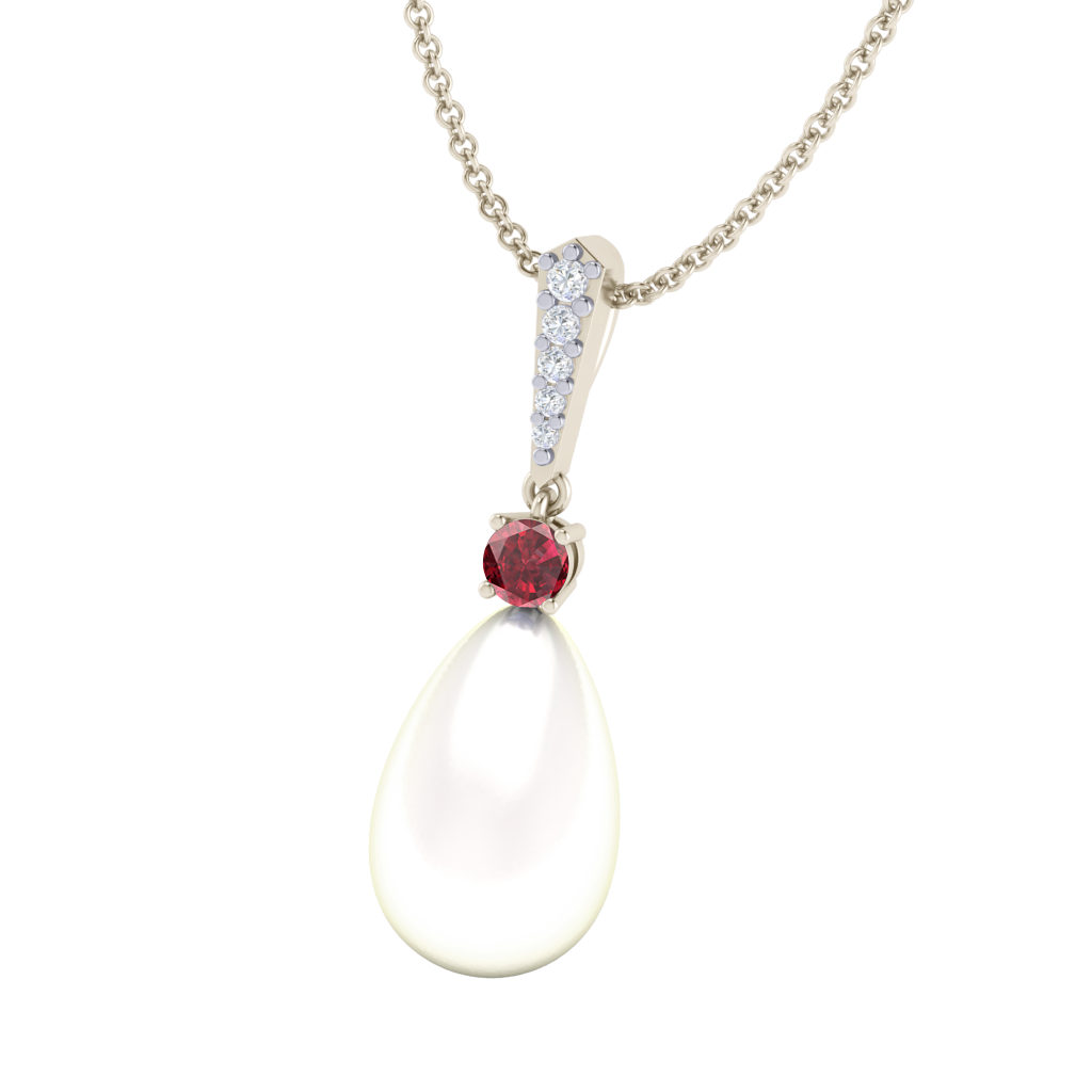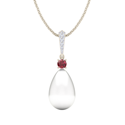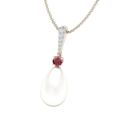 Die Kombination der majestätischen Perle mit dem glitzernden Rubin ist eine zeitlose Ergänzung für jede Schmucksammlung. Ihre Kette und Fassung wird aus 18 Karat Weißgold gefertigt.