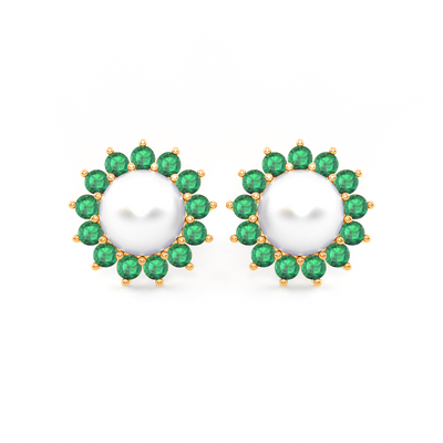 Unsere Perlenohrstecker zeigen eine klassische Süßwasser-Zuchtperle, die von einem bunten, sternförmigen Geflecht aus zarten Smaragd Steinen umrahmt und aus massivem, recyceltem 18 Karat Gelbgold gefertigt ist. Wir lieben die Perlenohrstecker als farbenfrohe Schmuckbegleiter für jeden Tag oder als Geschenk für einen besonderen Menschen. Wie wäre es mit der Kombination mit einem blauen Saphir oder Aquamarin für den besonderen "Something Blue"-Moment an Ihrem oder deren Hochzeitstag?
