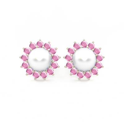 Classic Pearl and Pink Sapphire Studs