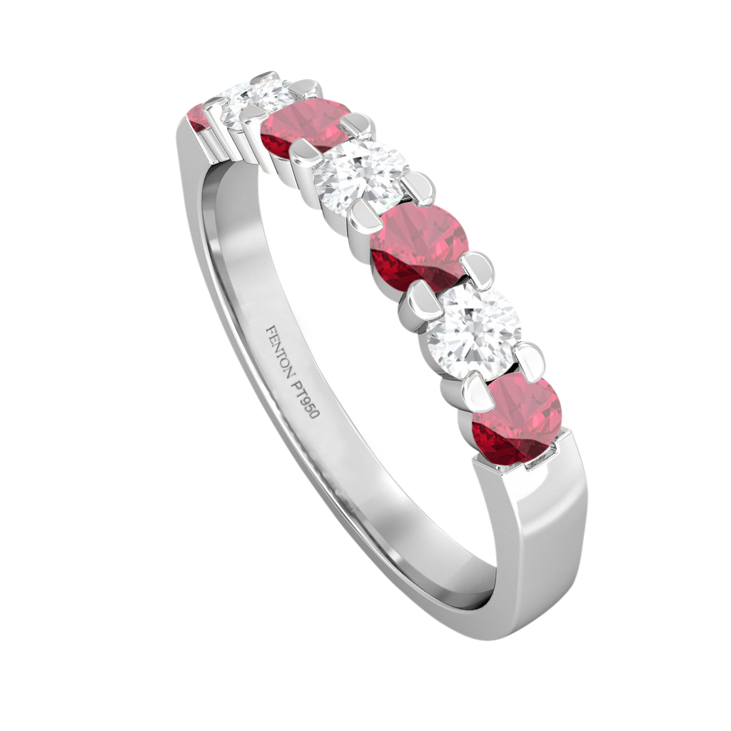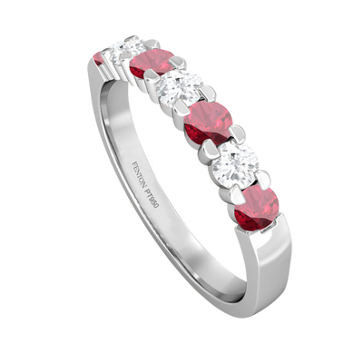 Groß, kühn und schön - dieses Band hat es in sich. Tragen Sie es allein oder kombinieren Sie es mit Ihrem Fenton-Ring oder anderen Fenton-Bändern. Das Seven Stone Band hat ca. 0,2cts Diamanten und 0,4cts Edelsteine und ist aus massivem Platin gefertigt.