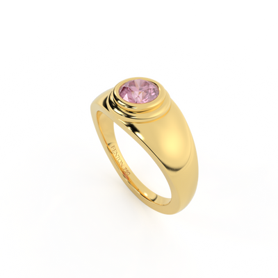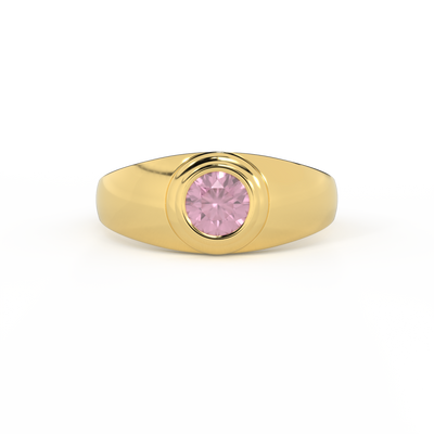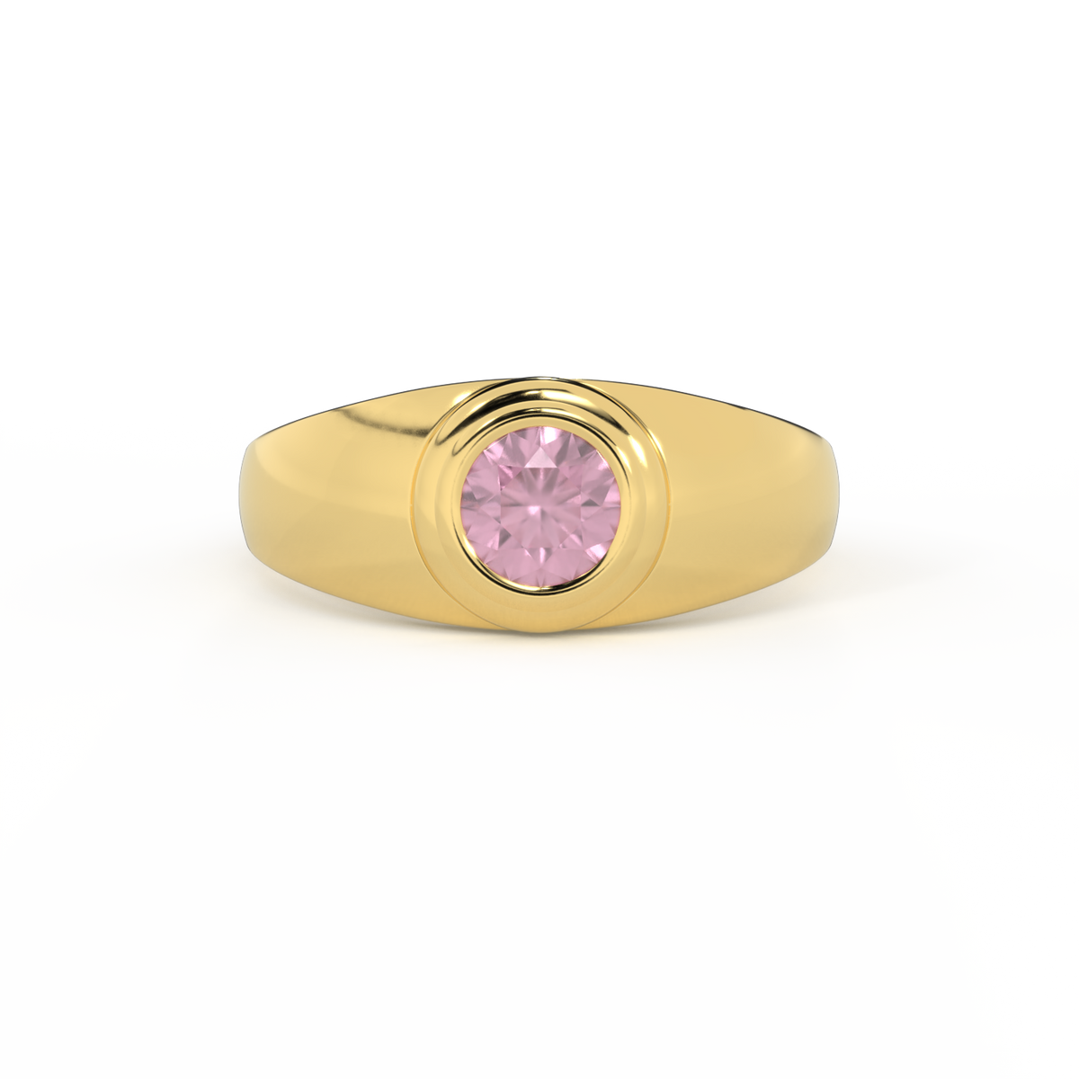 Signet Round Pink Sapphire 18K Yellow Gold Ring