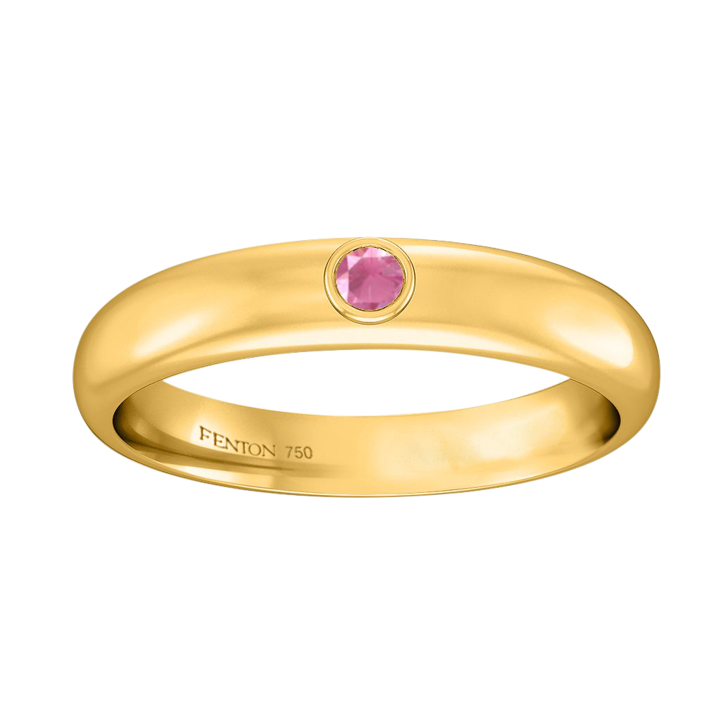 Kombinieren Sie einen einzelnen Edelstein mit Ihrem Partnerring von Fenton oder geben Sie dem klassischen runden Band mit dem Single Stone einen neuen Dreh. Dieses Band ist 4 mm breit und aus 18 Karat Gold gefertigt.