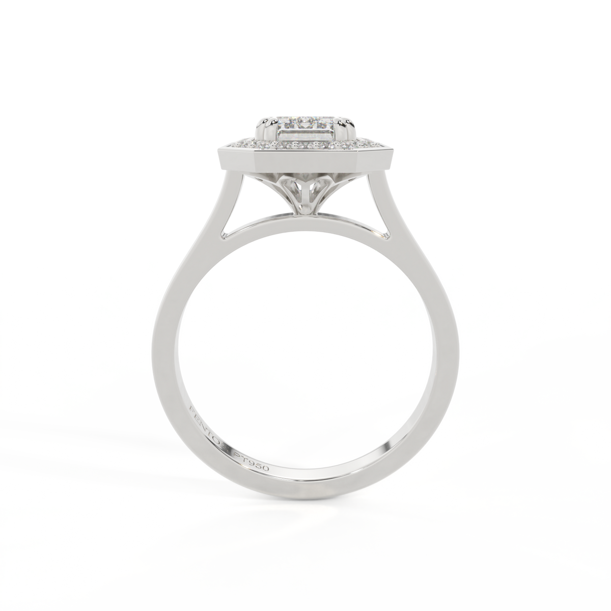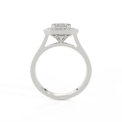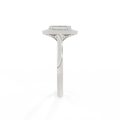 Lab Grown Solar Diamond Deco Emerald Cut Diamond Platinum Ring