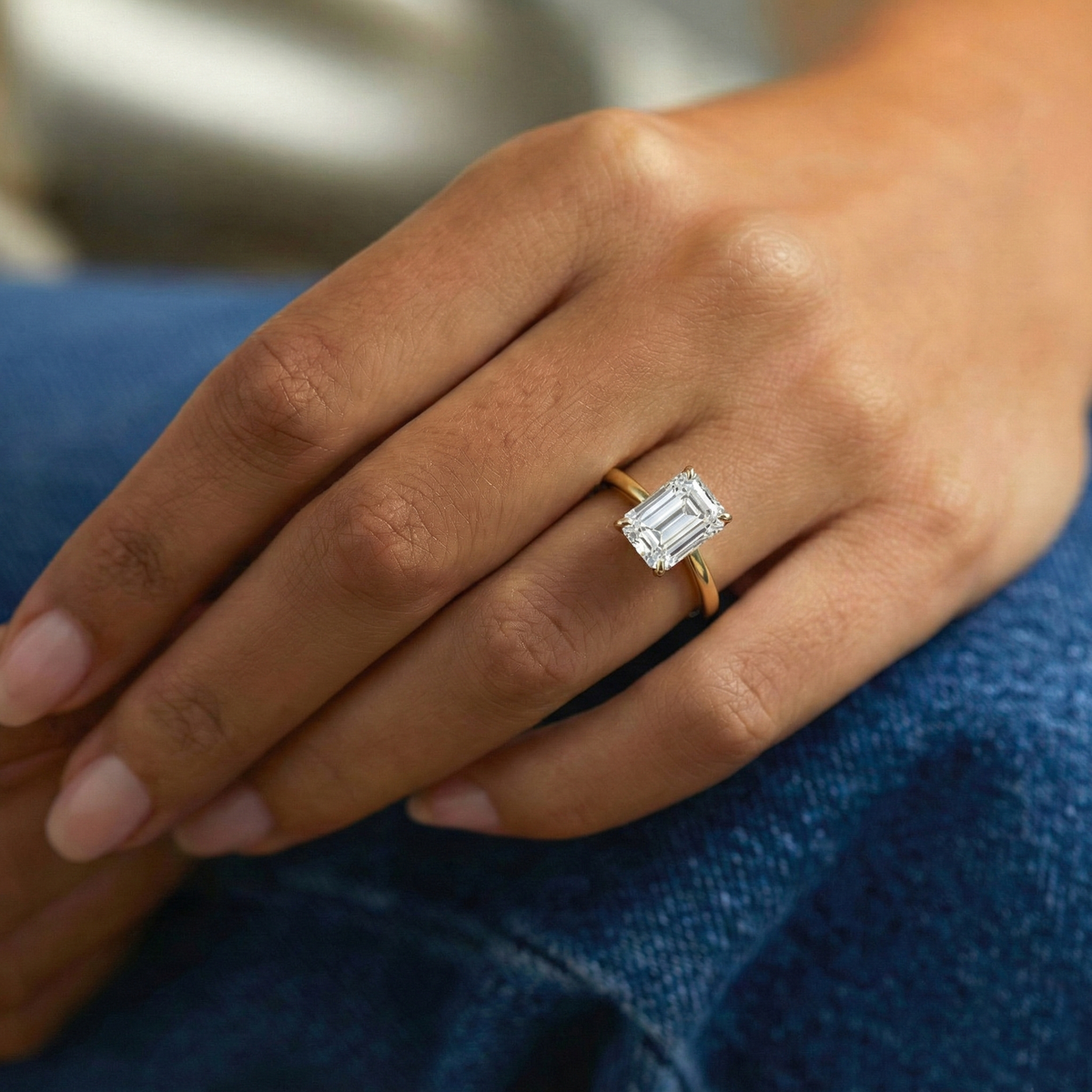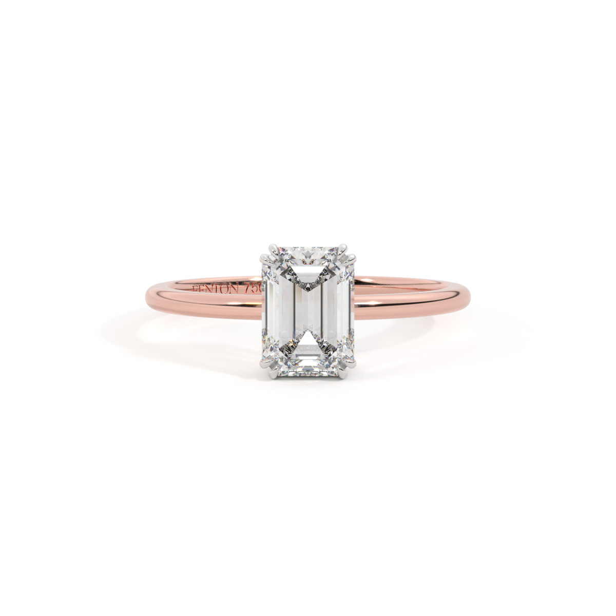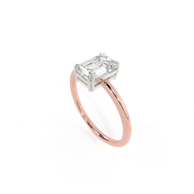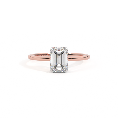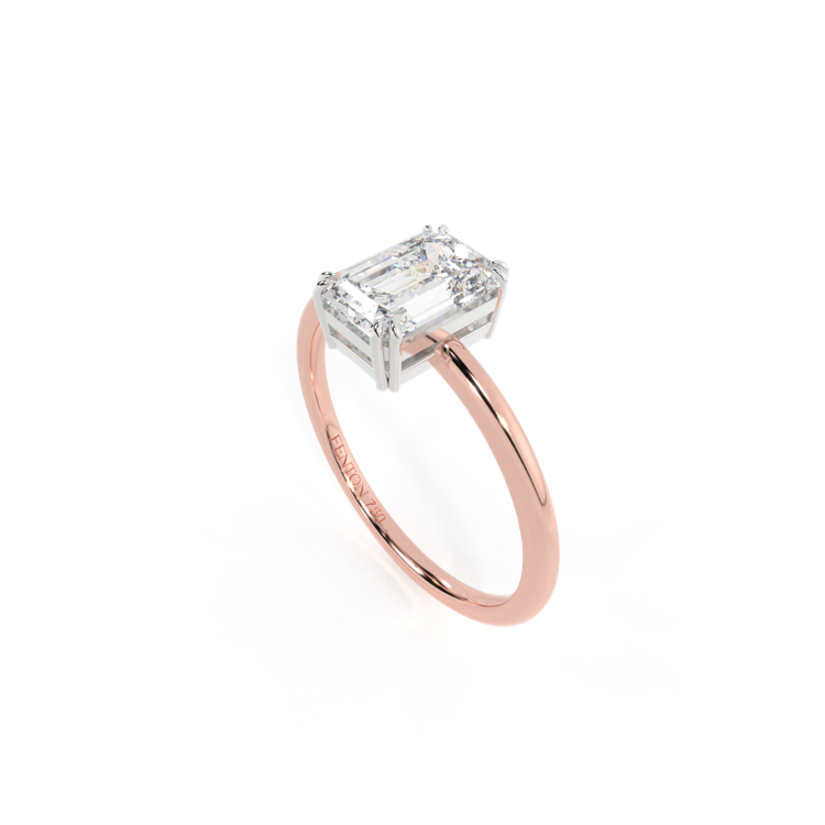 Lab Grown Solar Diamond Solitaire Emerald Cut 18k Rose Gold Ring