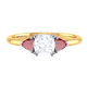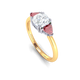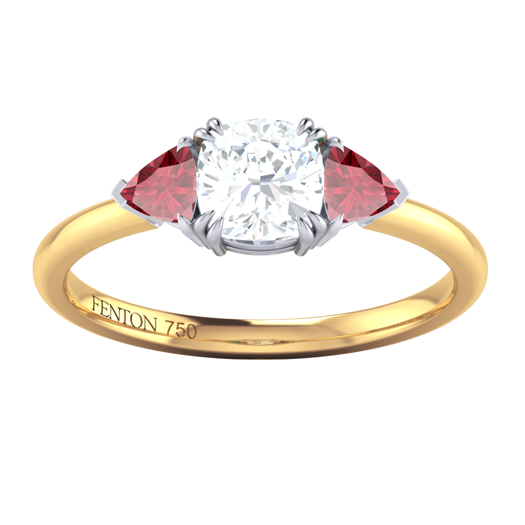 Lab Grown Solar Diamond Trilogy Cushion Cut Diamond and Ruby 18k Yellow Gold Ring