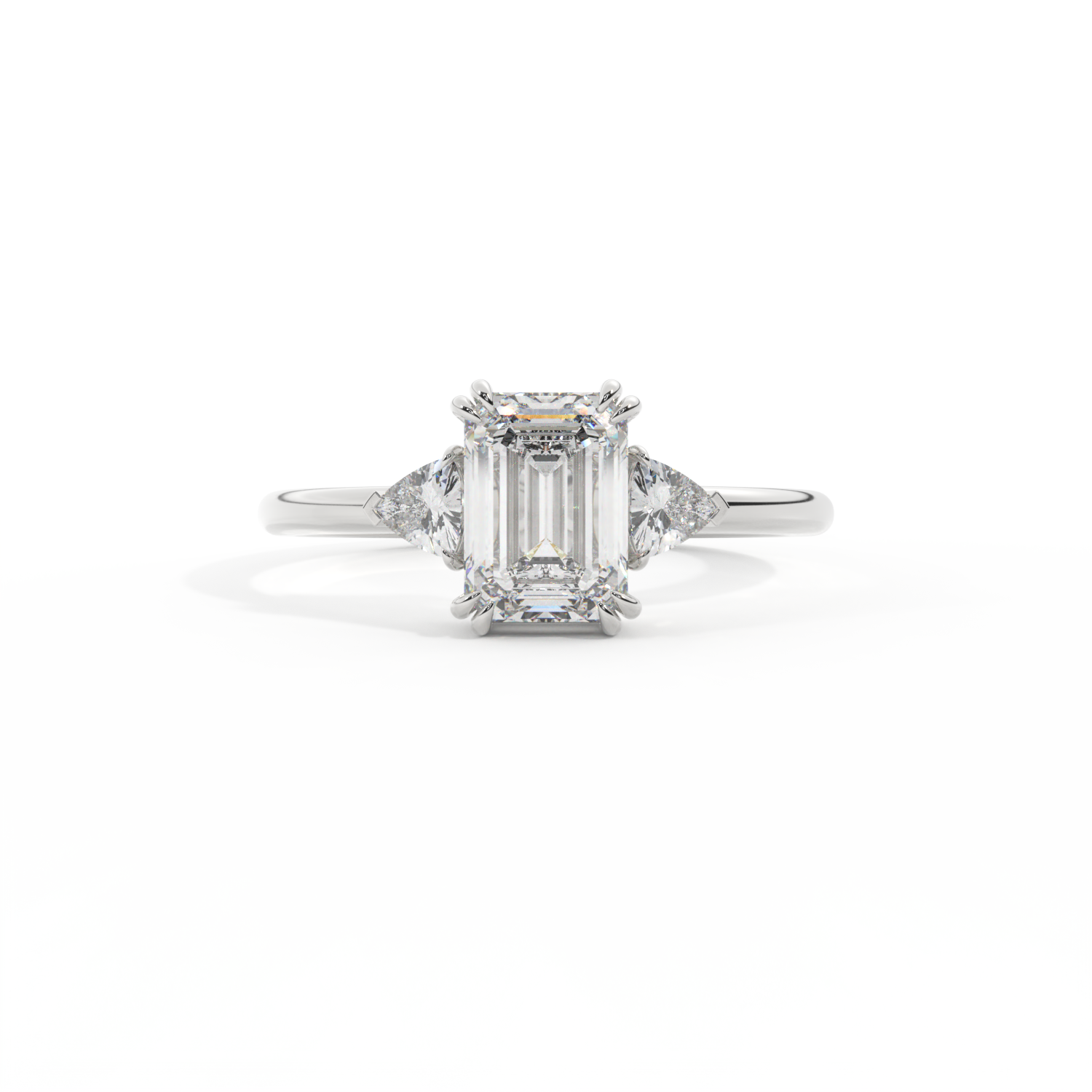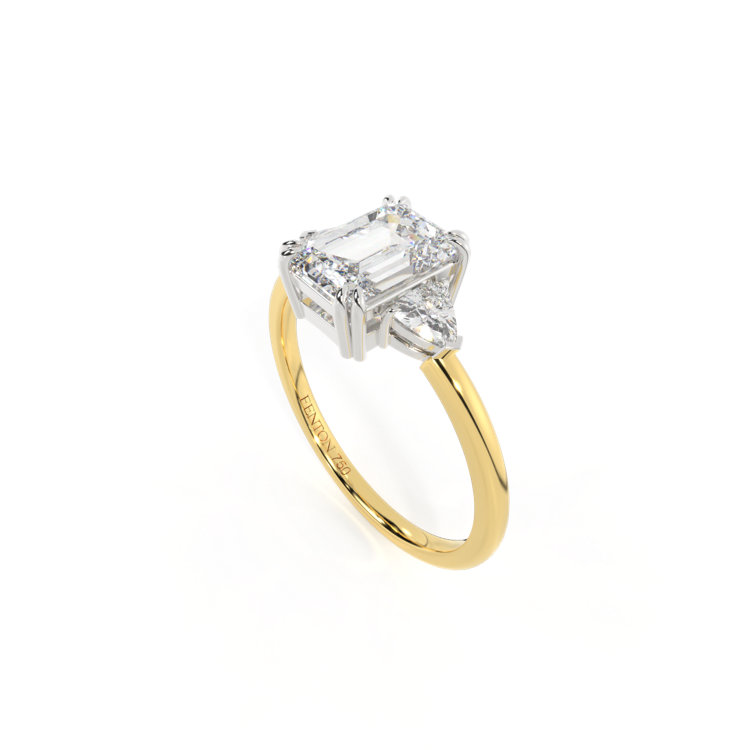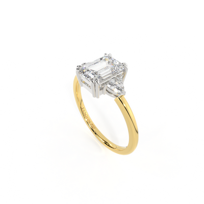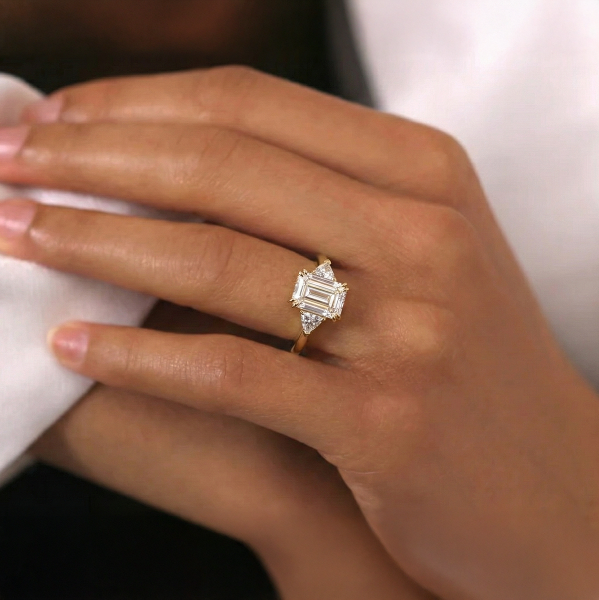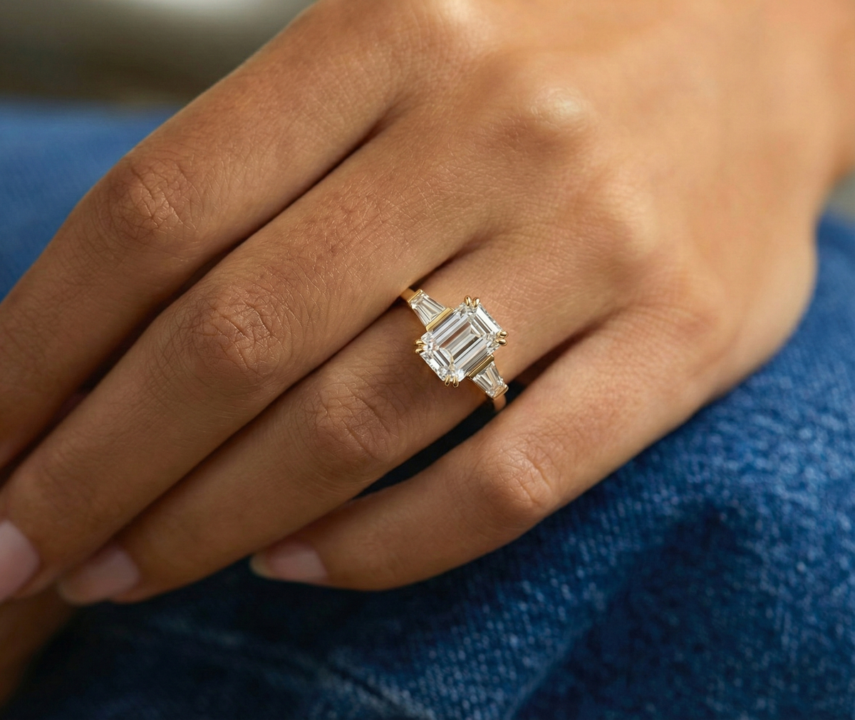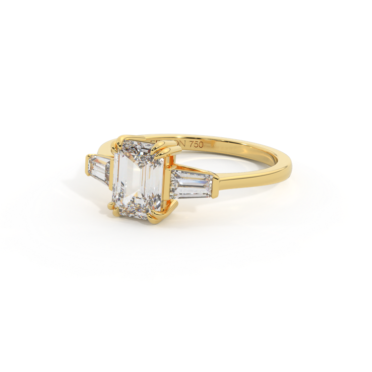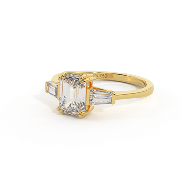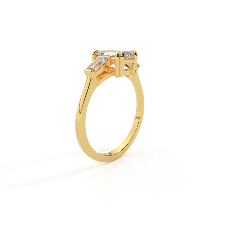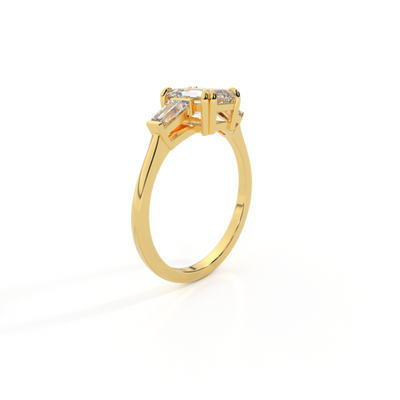 Lab Grown Solar Diamond Trilogy Emerald Cut Diamond 18k Yellow Gold Ring