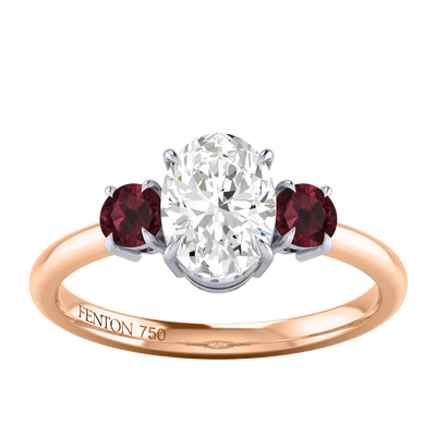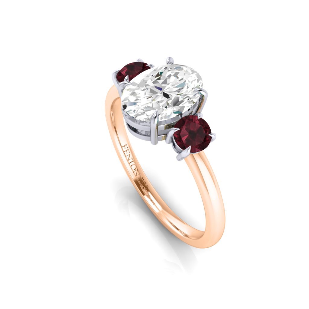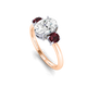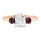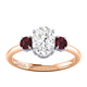 Lab Grown Solar Diamond Trilogy Oval Cut Diamond and Garnet 18k Rose Gold Ring