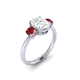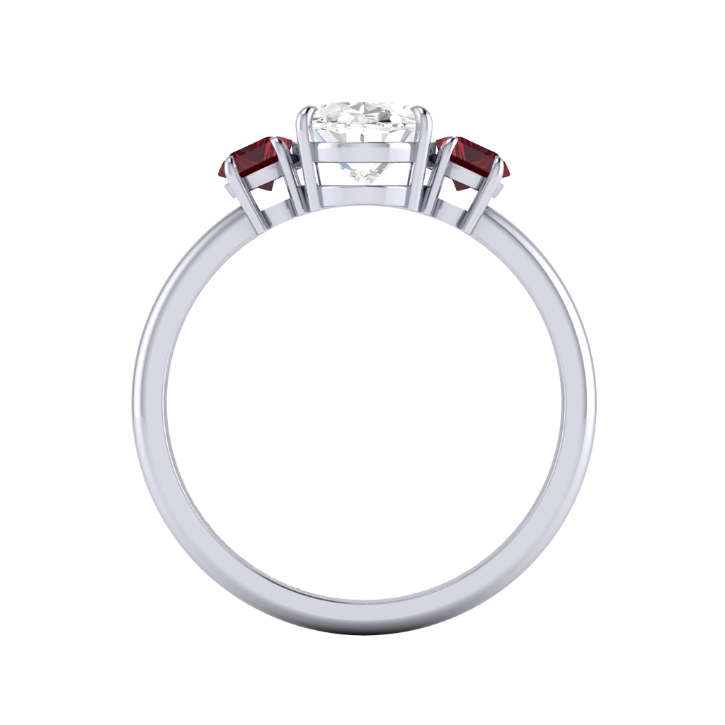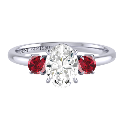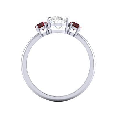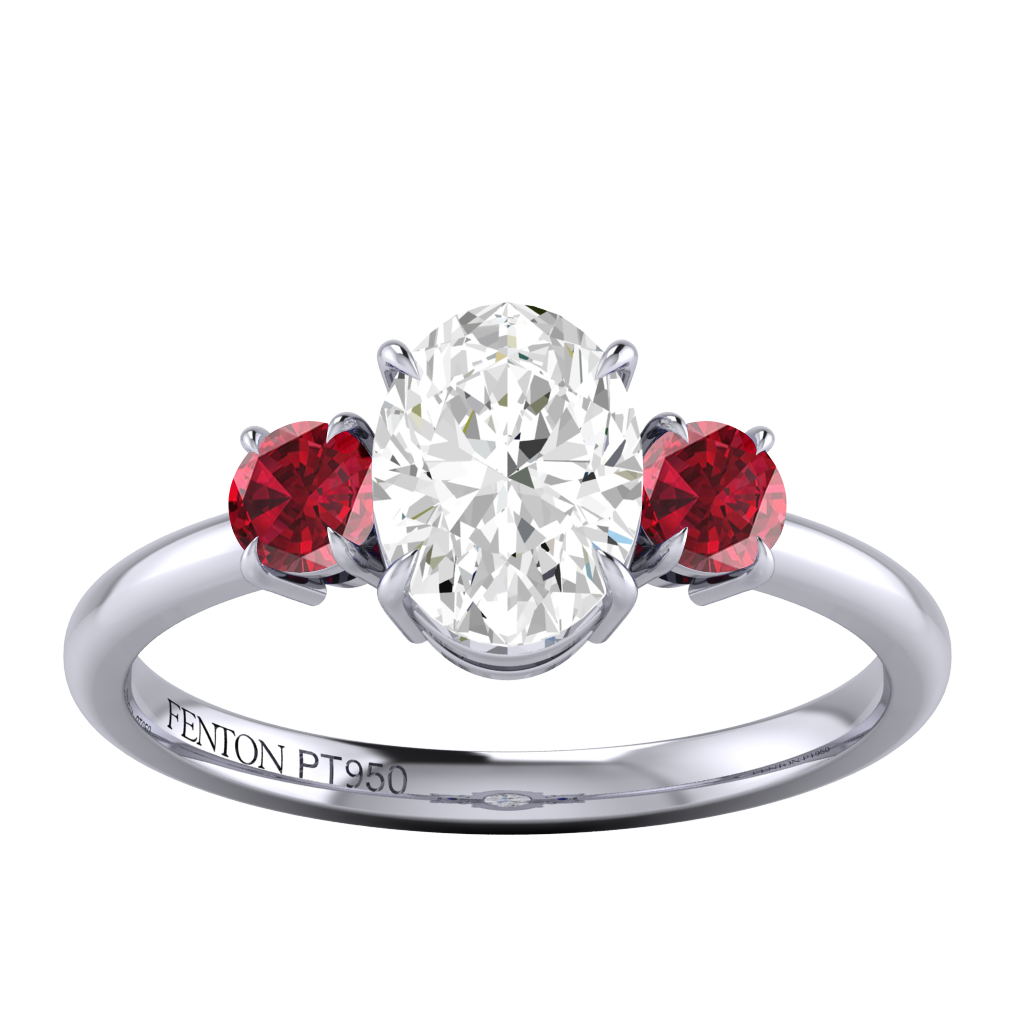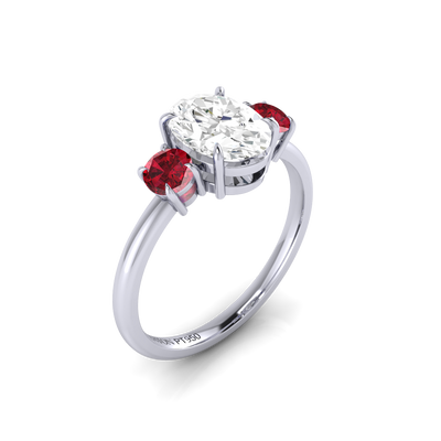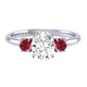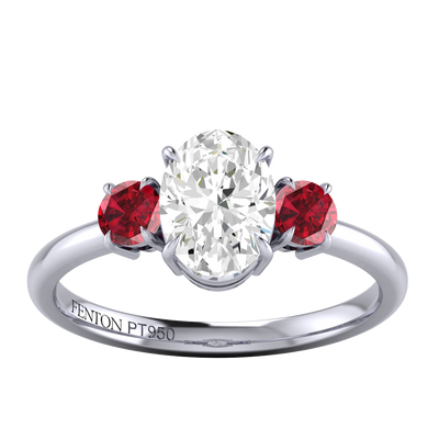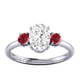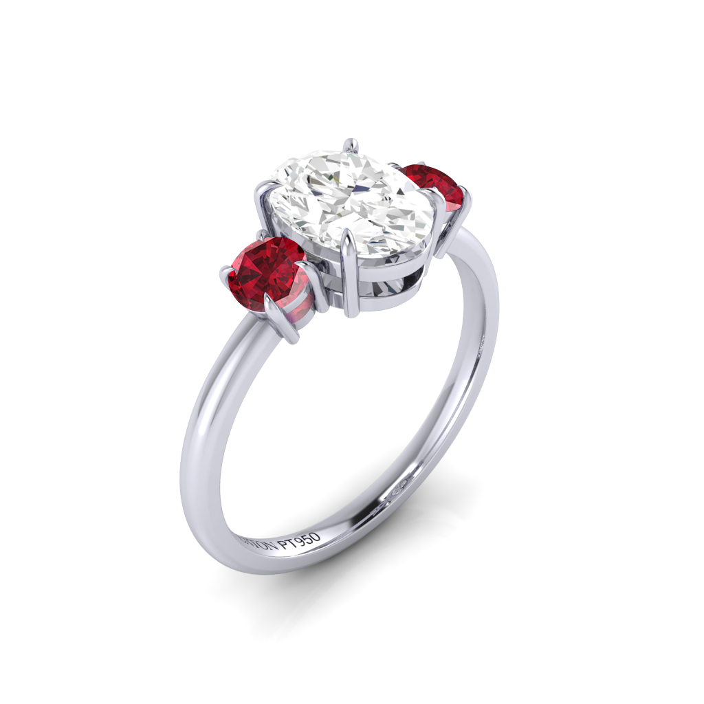 Lab Grown Solar Diamond Trilogy Oval Cut Diamond and Ruby Platinum Ring