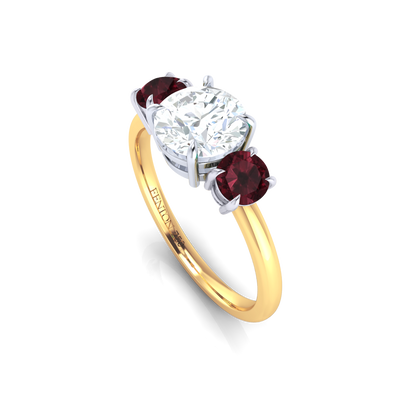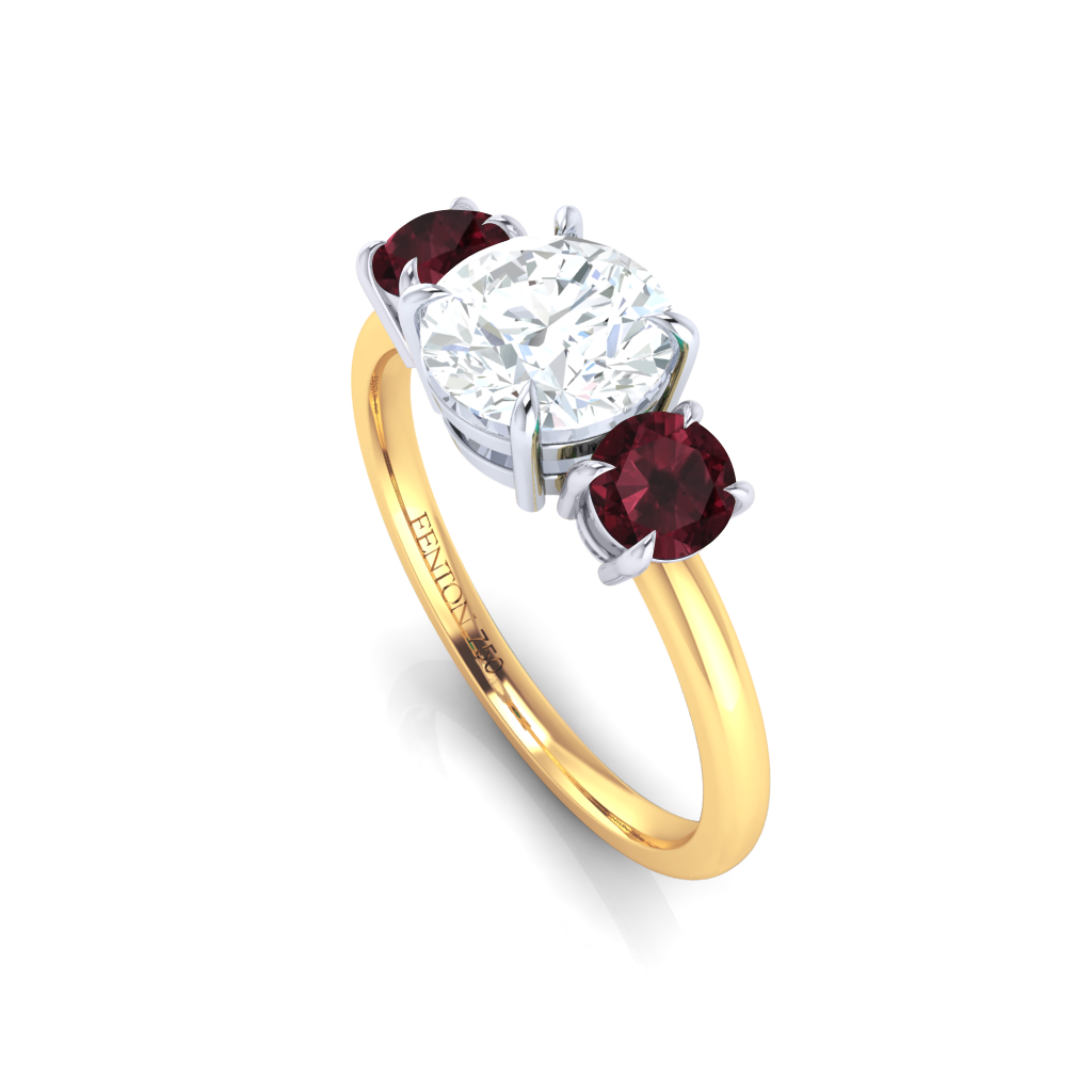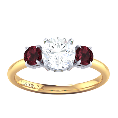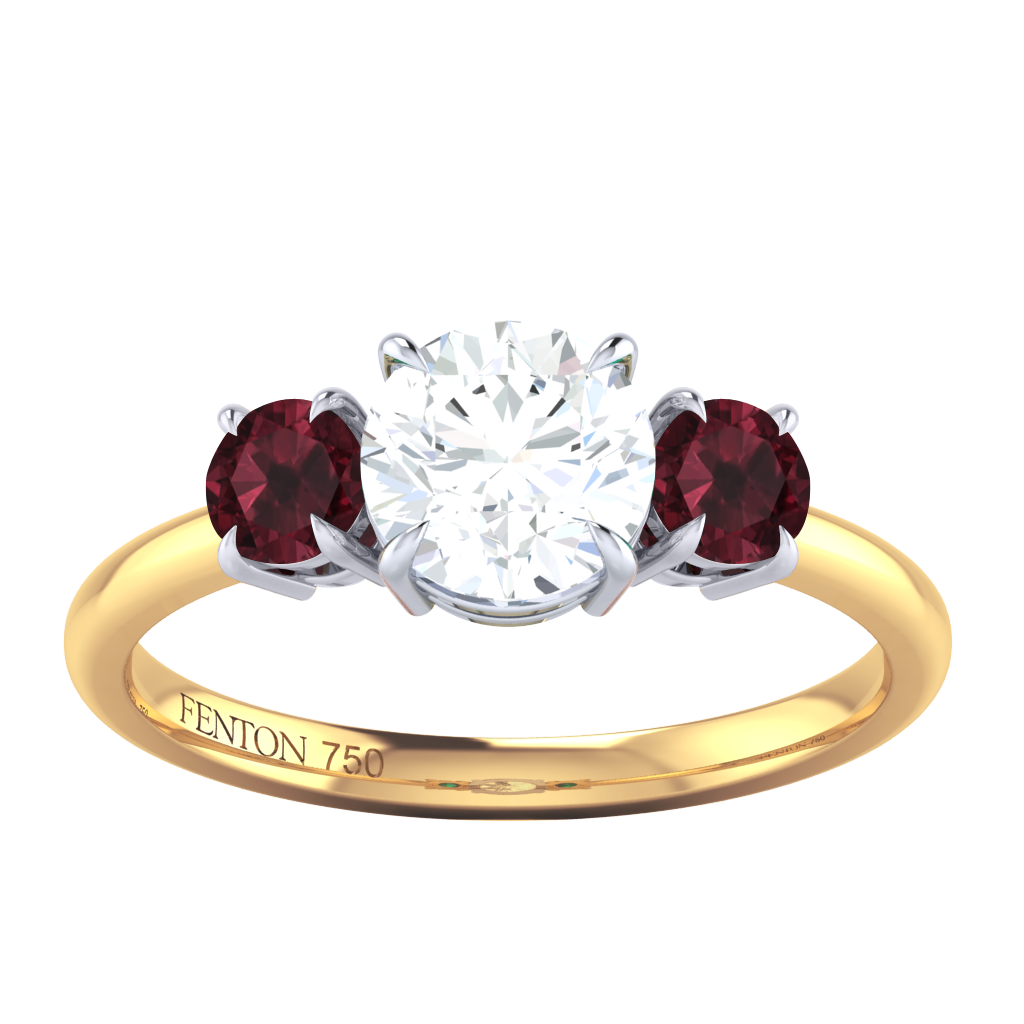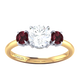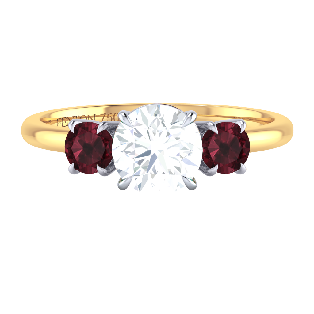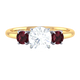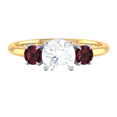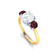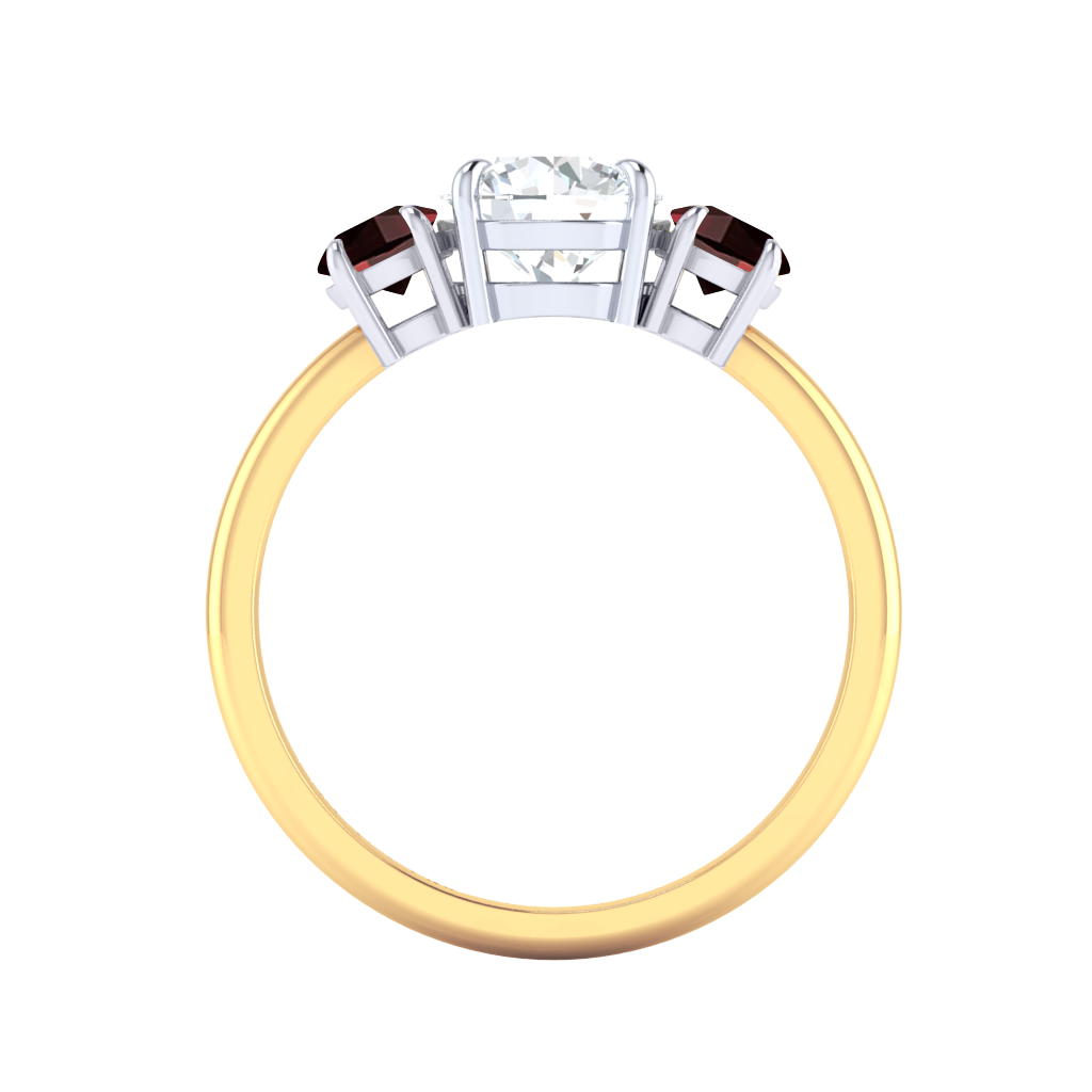 Lab Grown Solar Diamond Trilogy Round Cut Diamond and Garnet 18k Yellow Gold Ring