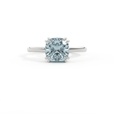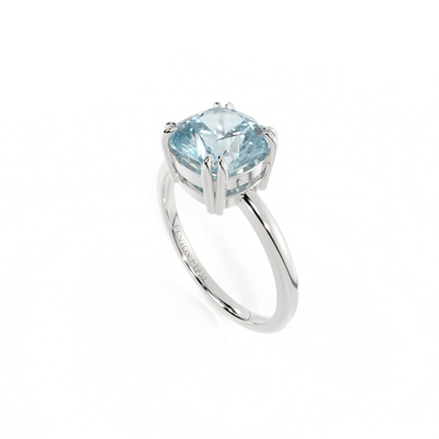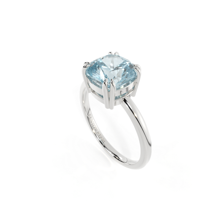 Solitaire Cushion Aquamarine Platinum Ring