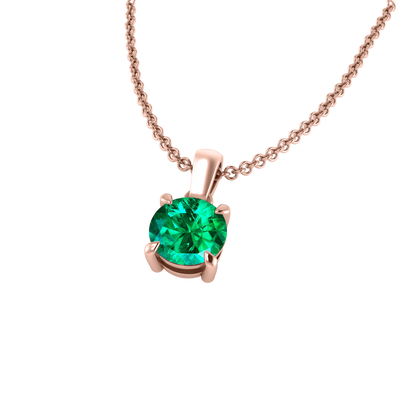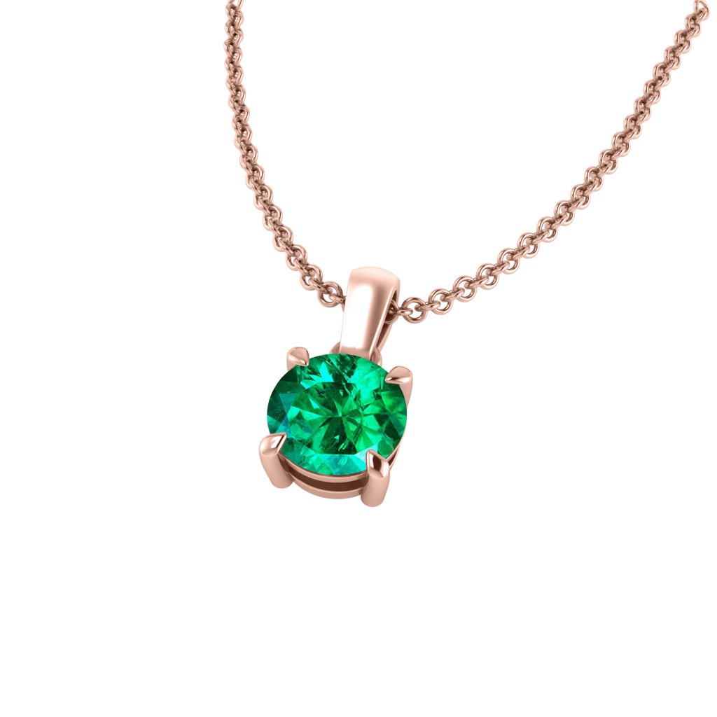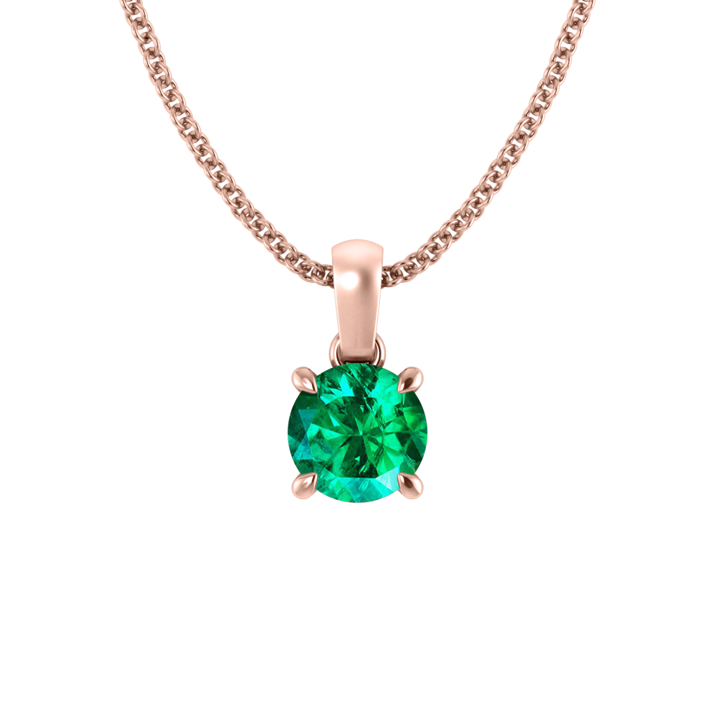 Die Solitaire Anhänger-Halskette ist ein funkelnder Favorit, der Zeitlosigkeit mit einem farbenfrohen Twist kombiniert. Der Runden geschliffene Smaragd Anhänger schwingt elegant an einer massiven, recycelten 18 Karat Roségold Kette, die 18 Zoll misst und auf eine kürzere Länge von 16 Zoll einstellbar ist.