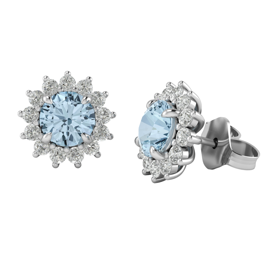 Star Stud Round Aquamarine 18K White Gold Earrings