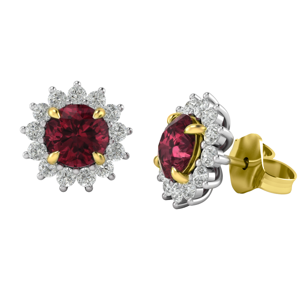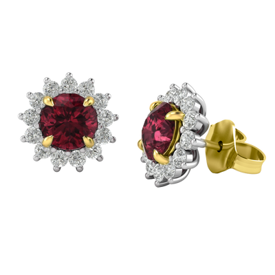 Star Stud Round Garnet 18K Yellow Gold Earrings