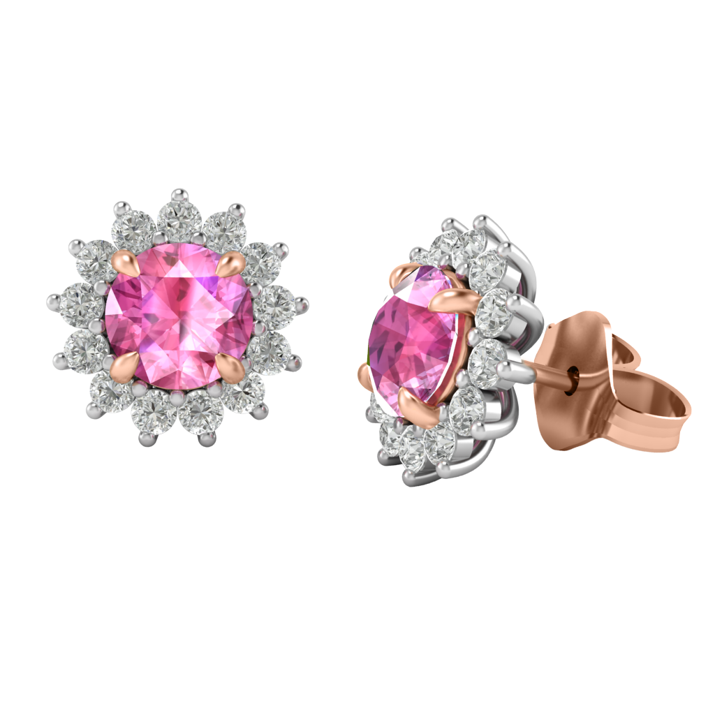 Star Stud Round Pink Sapphire 18K Rose Gold Earrings