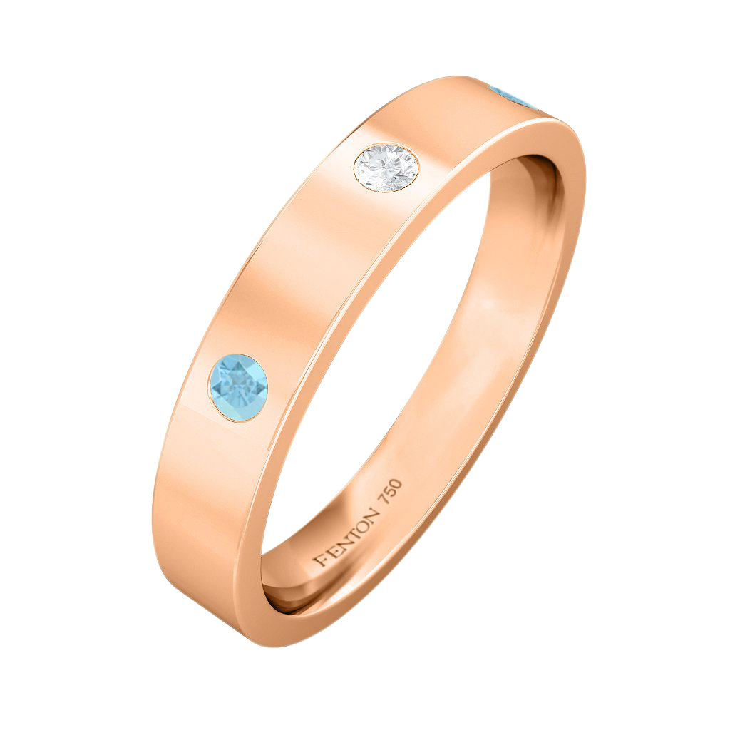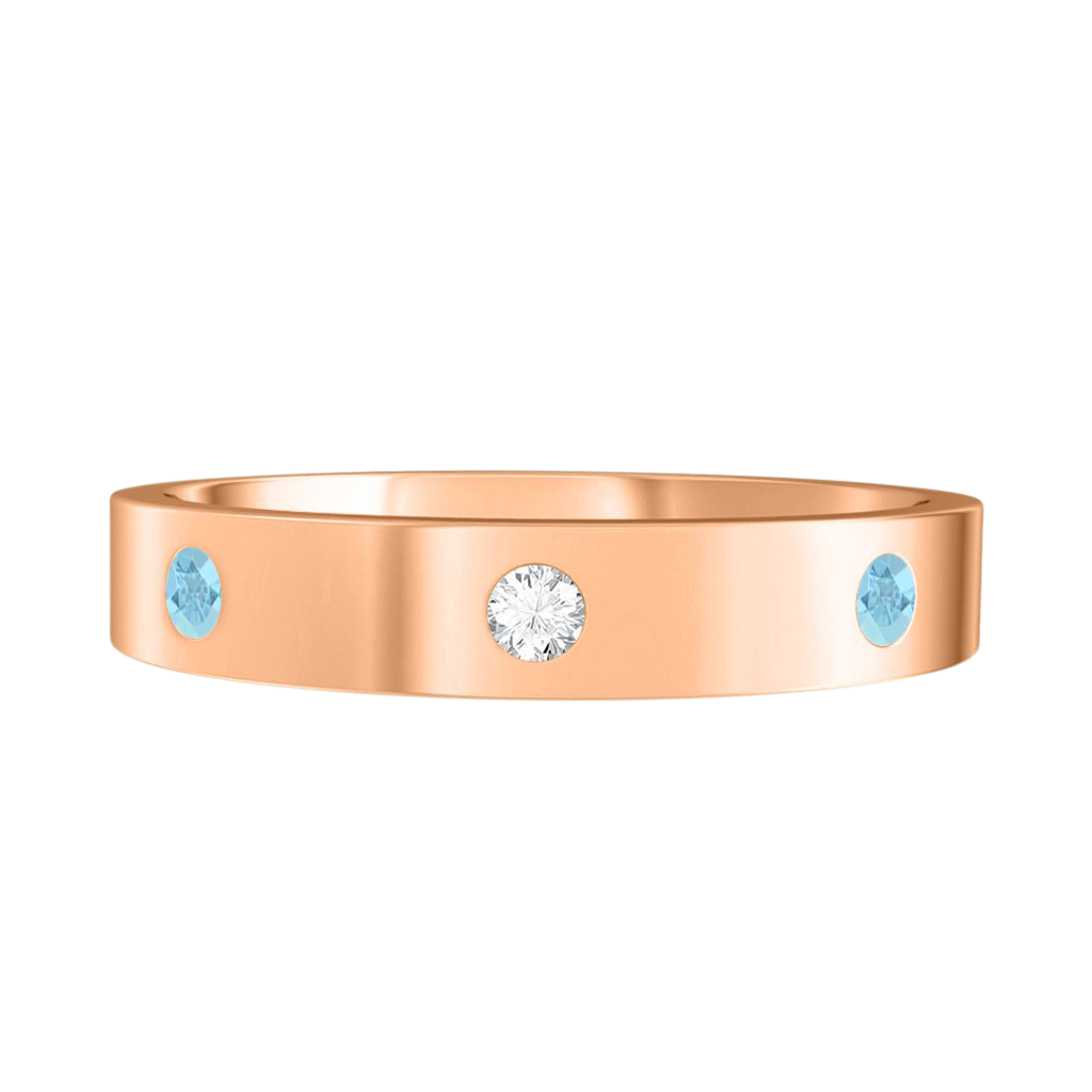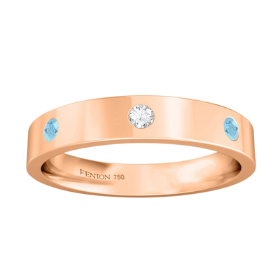 Mit unserem Drei-Steine-Band können Sie ein außergewöhnliches Schmuckstück kreieren, das garantiert alle Blicke auf sich zieht. Dieses Band ist 4 mm breit und aus 18 Karat Roségold gefertigt.