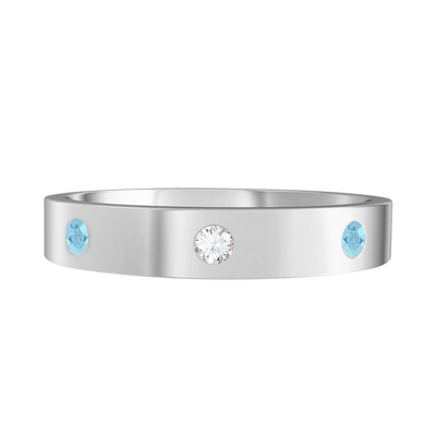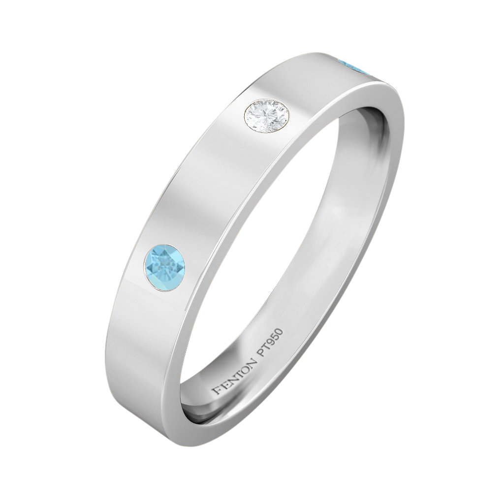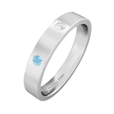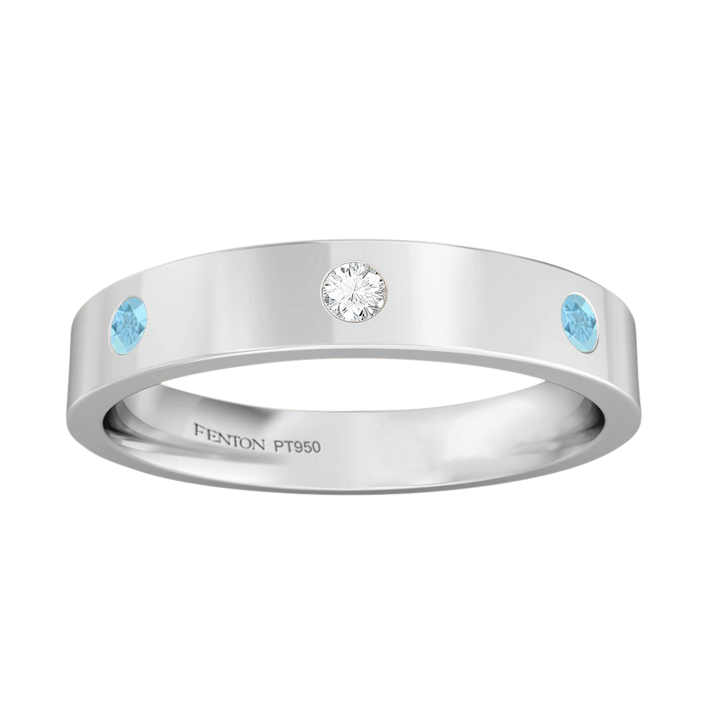Mit unserem Drei-Steine-Band können Sie ein außergewöhnliches Schmuckstück kreieren, das garantiert alle Blicke auf sich zieht. Dieses Band ist 4 mm breit und aus Platin gefertigt.