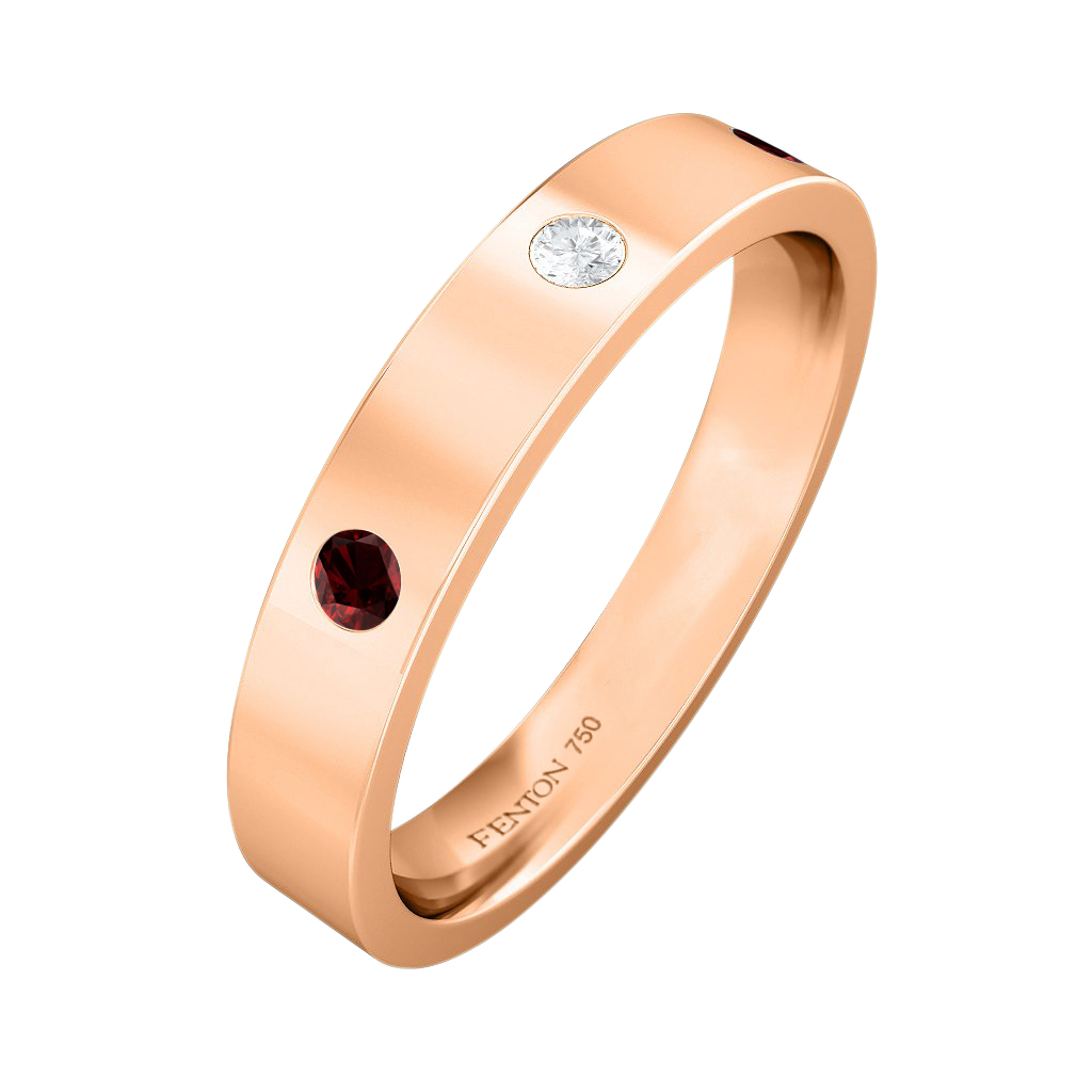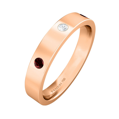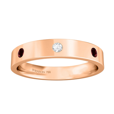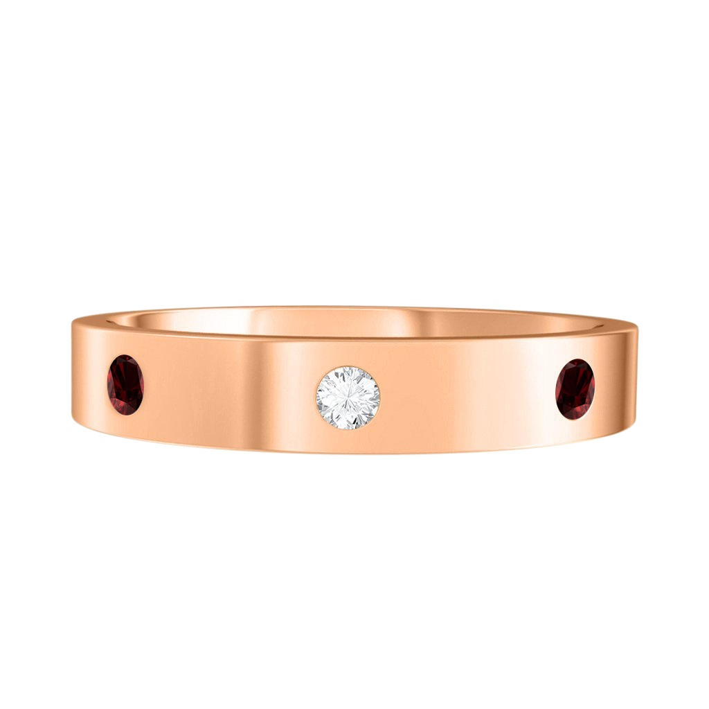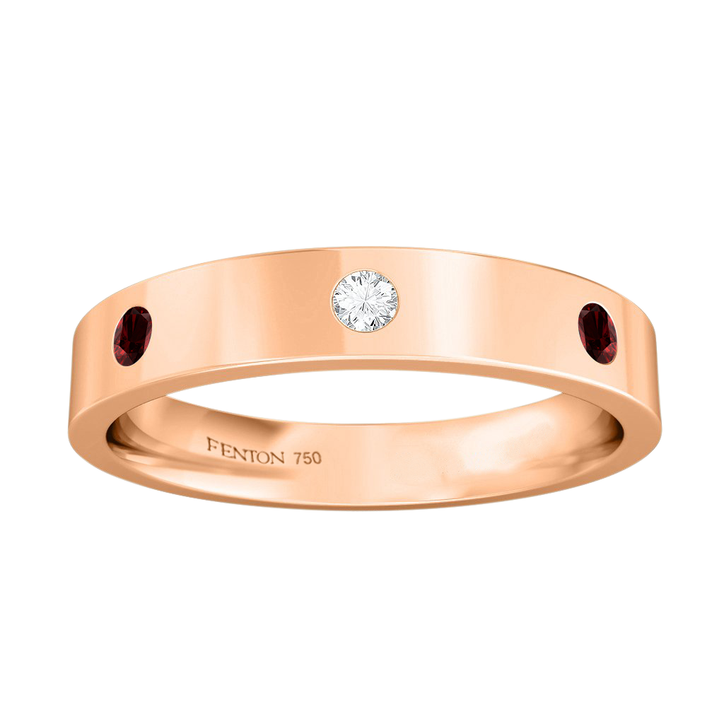 Mit unserem Drei-Steine-Band können Sie ein außergewöhnliches Schmuckstück kreieren, das garantiert alle Blicke auf sich zieht. Dieses Band ist 4 mm breit und aus 18 Karat Roségold gefertigt.